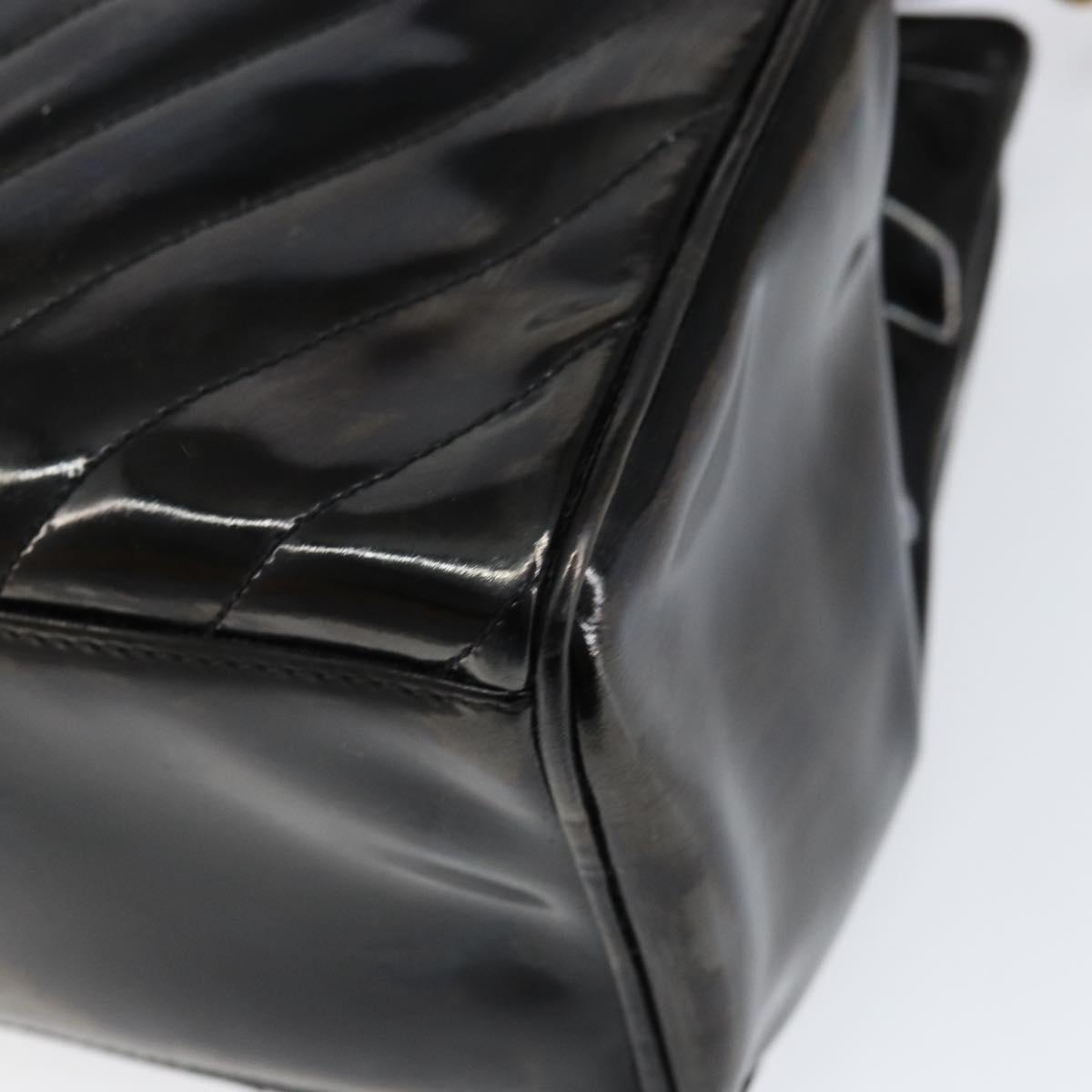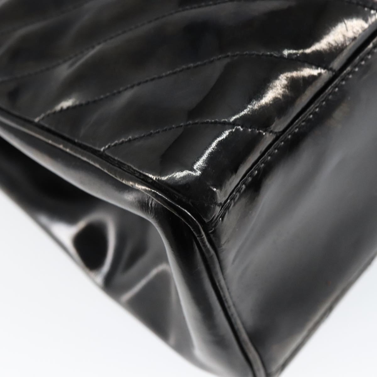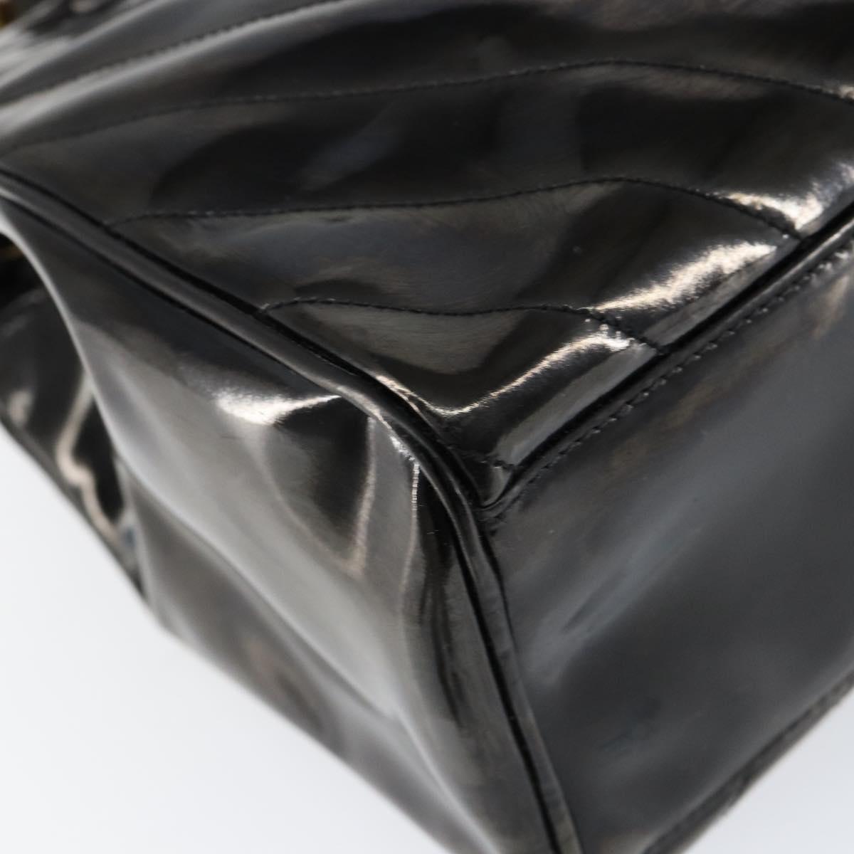 CHANEL V Stitch Hand Bag Enamel 2way Black Gold CC - bs30989