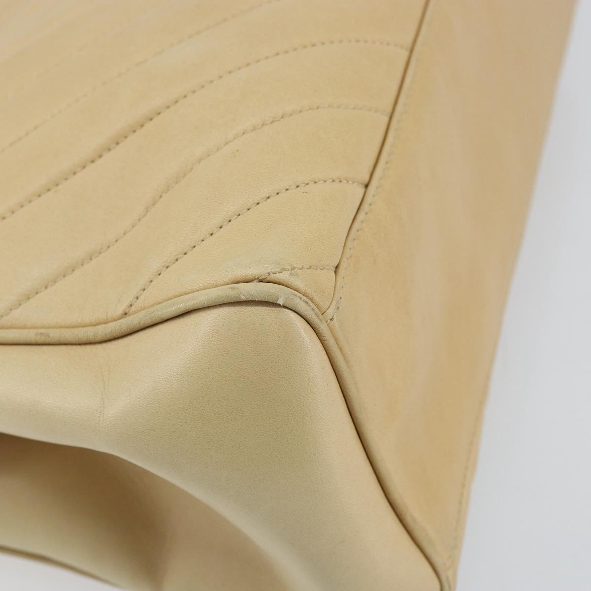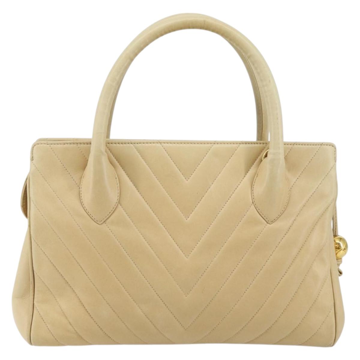 CHANEL V Stitch Hand Bag Lamb Skin Beige Gold CC - 128926