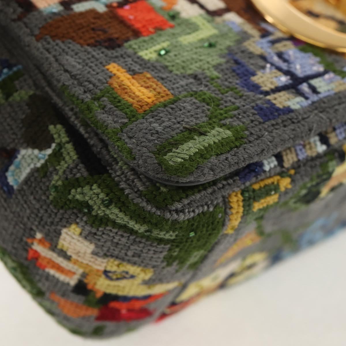 Christian Dior Chain Caro Shoulder Bag cotton Gray Gold - 152452AM