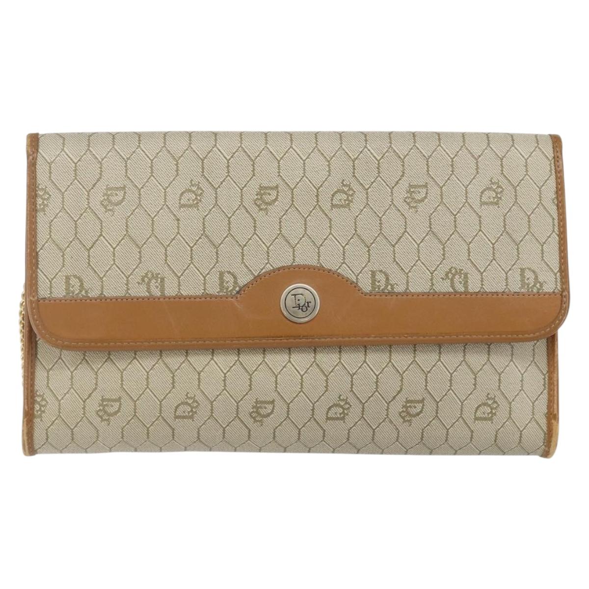 Christian Dior Honeycomb Canvas Chain Shoulder Bag PVC Beige Gold - 143712