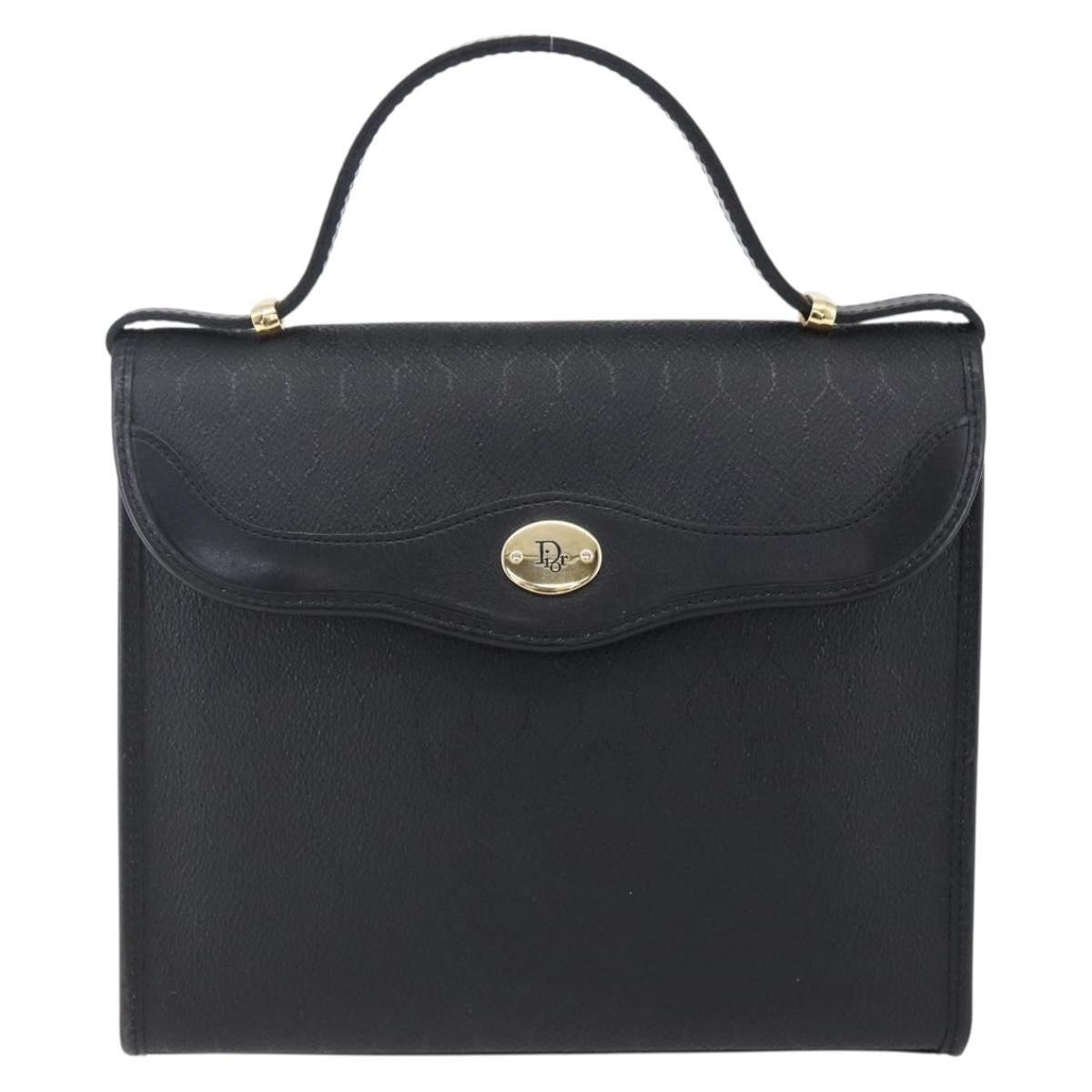 Christian Dior Honeycomb Canvas Hand Bag PVC Black Gold - 150746
