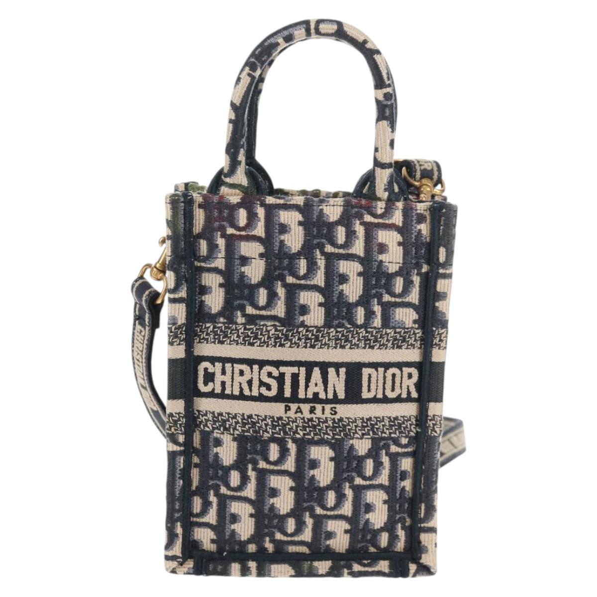 Christian Dior Trotter Canvas Book Tote Mini Bag 2way Navy Gold - 135401A