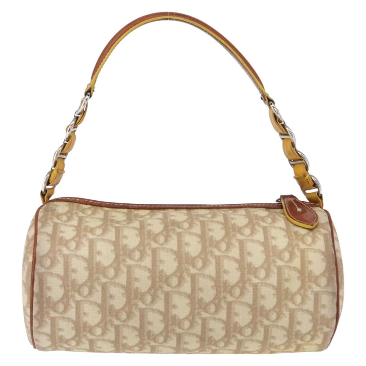 Christian Dior Trotter Canvas Romantic Hand Bag PVC Beige Silver - 153888