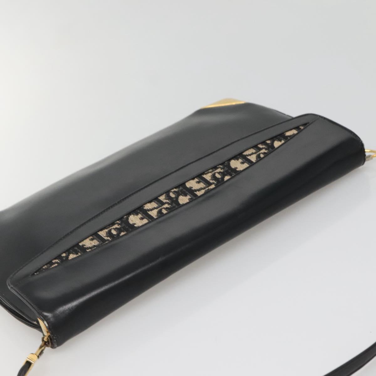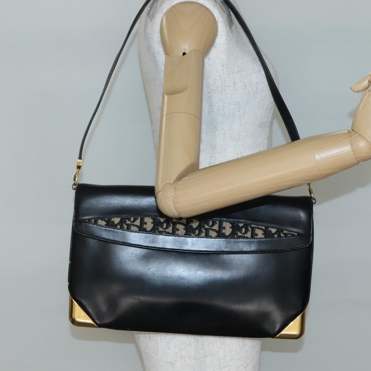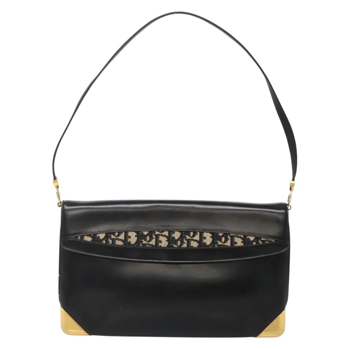 Christian Dior Trotter Canvas Shoulder Bag Leather Black Gold - 141053