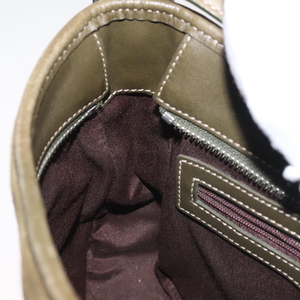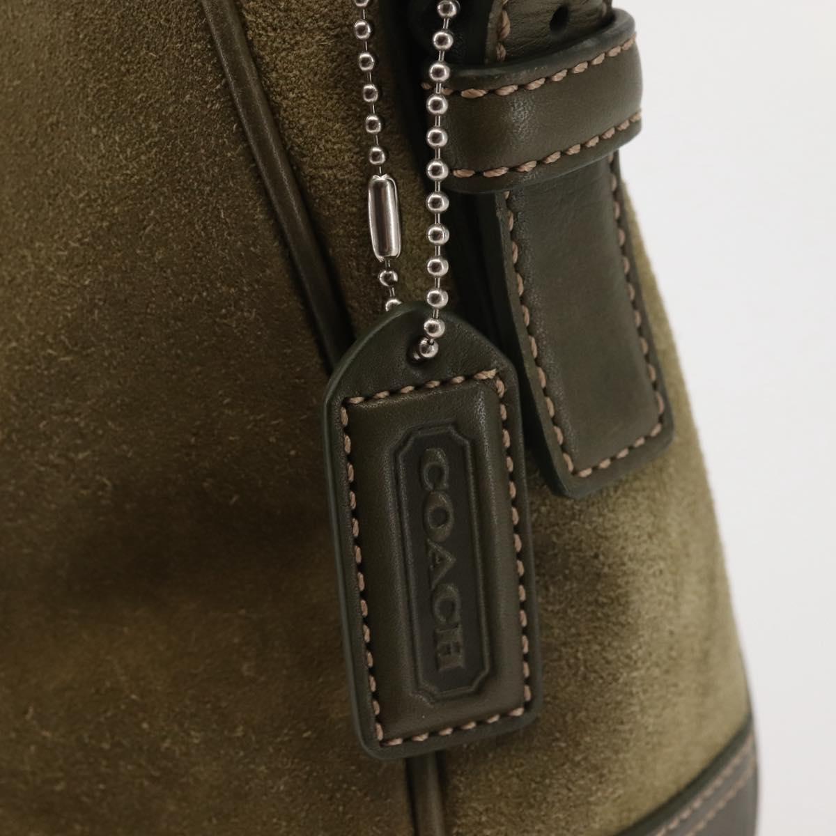 Coach Shoulder Bag Suede Leather Khaki Silver - am9145