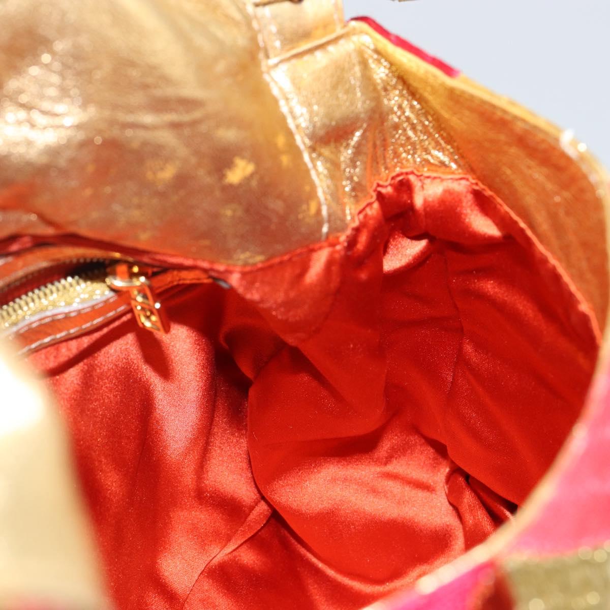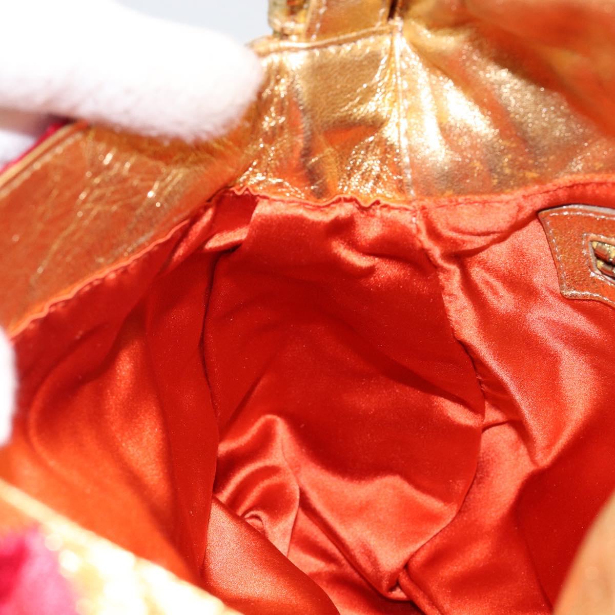 FENDI Mamma Baguette Shoulder Bag Satin Red Gold - 144979