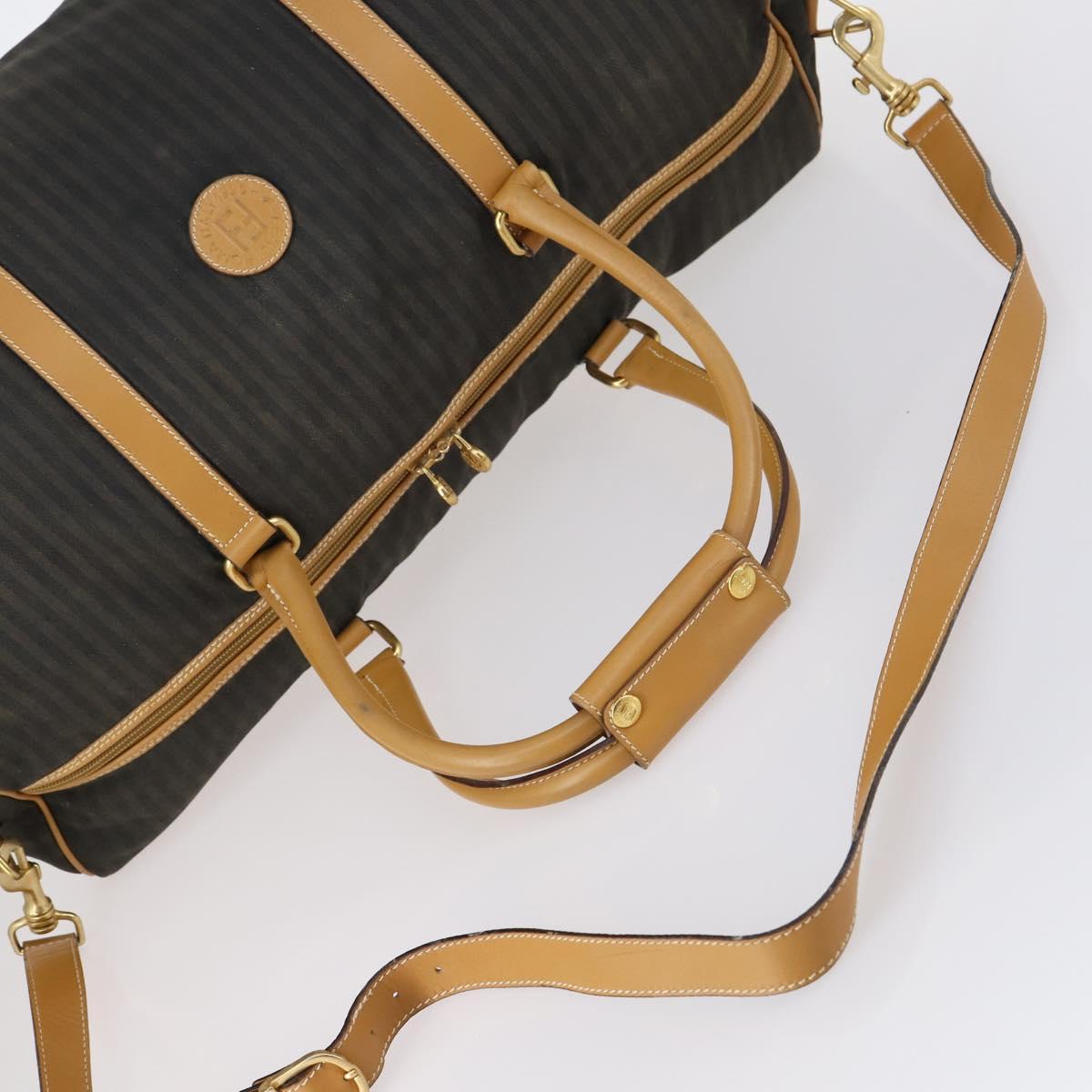 FENDI Pecan Canvas Boston Bag Coated Canvas 2way Black Brown - th6359