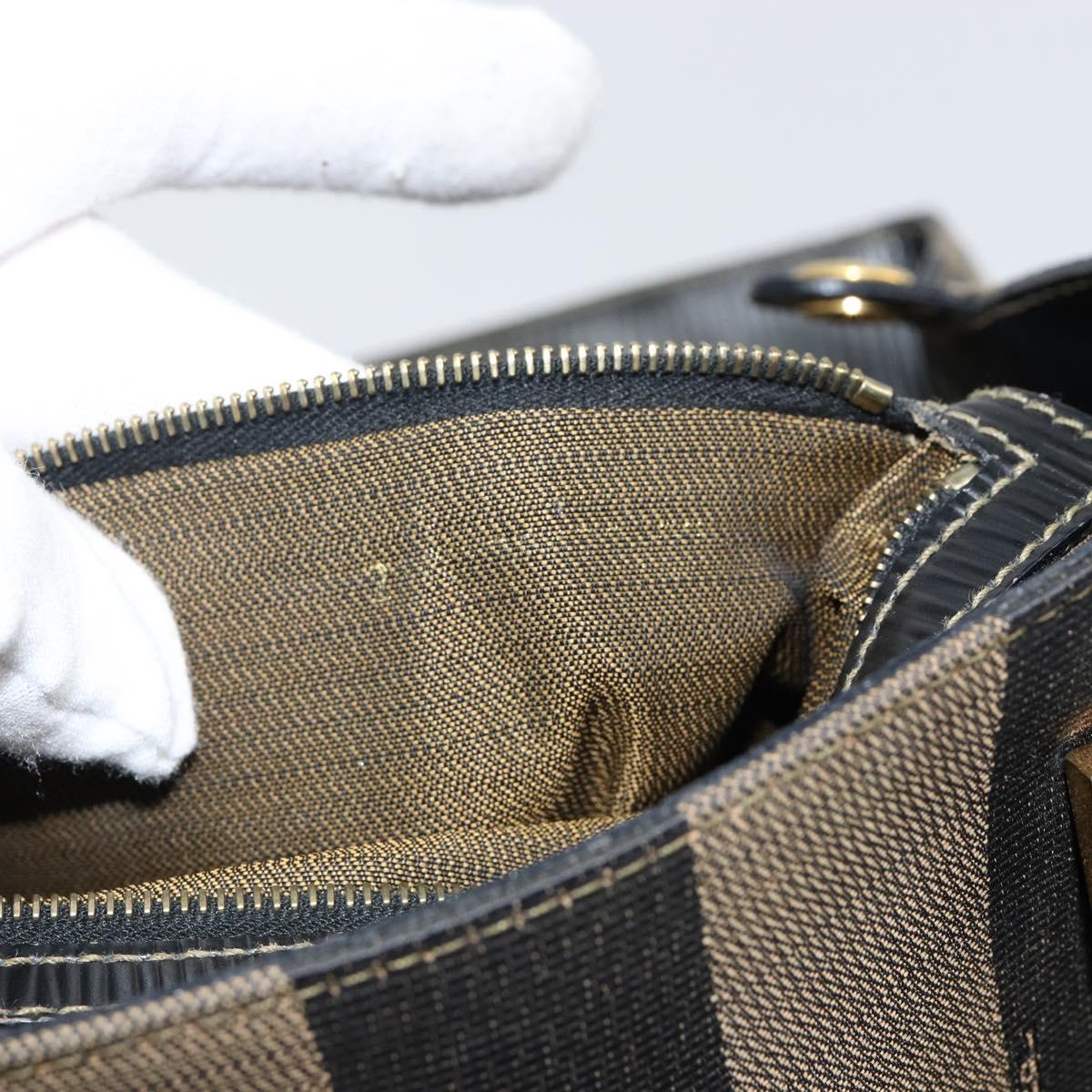FENDI Pecan Canvas Hand Bag Black Brown - 144279