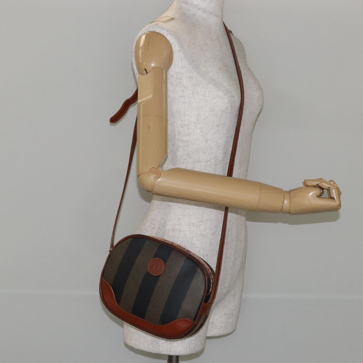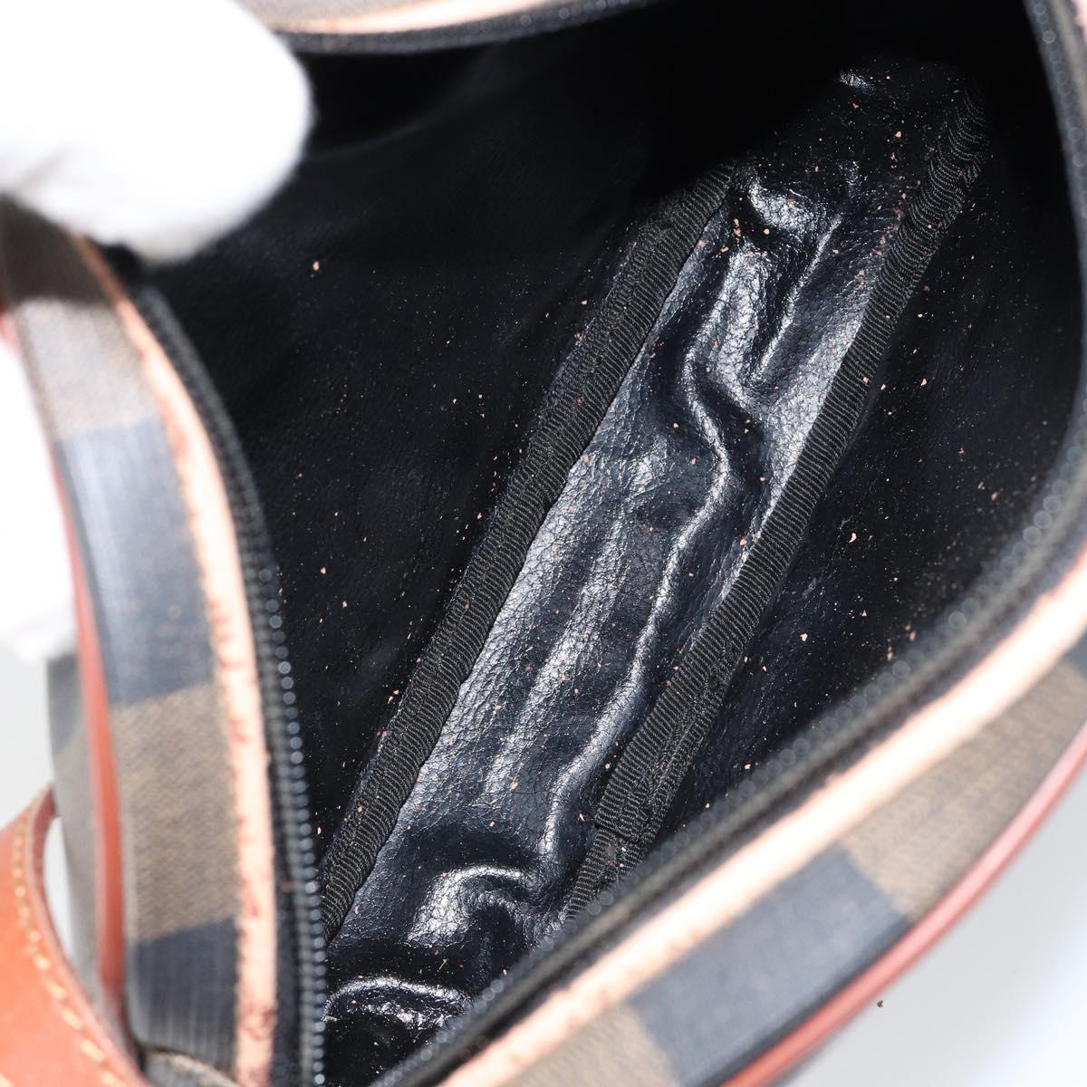 FENDI Pecan Canvas Shoulder Bag PVC Black Brown gold - ep11355