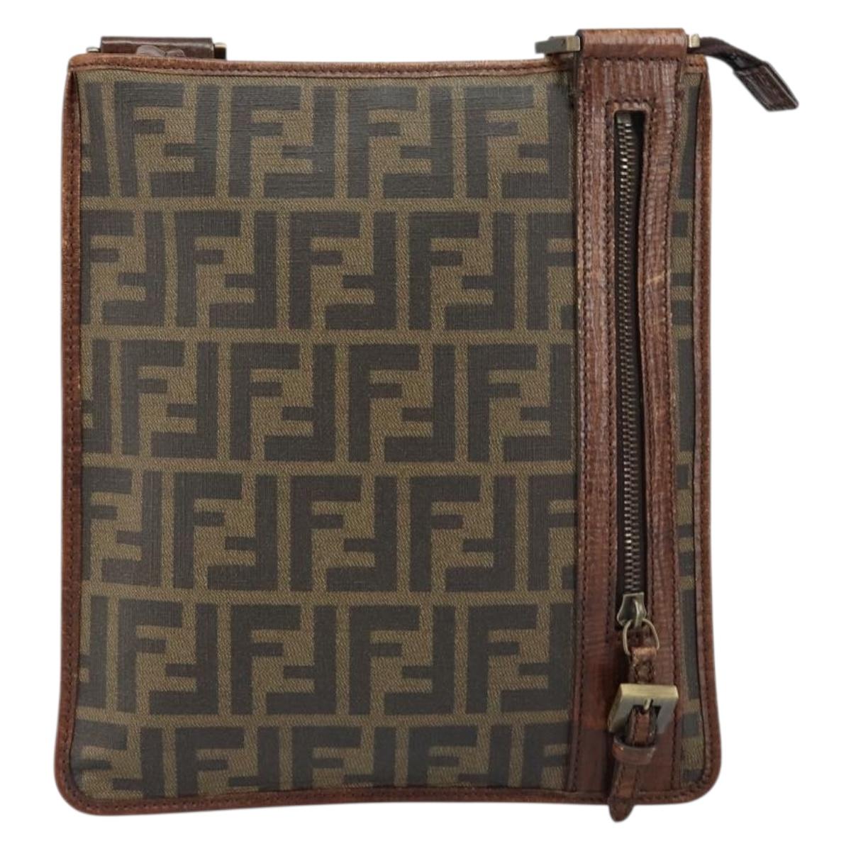 FENDI Zucca Canvas Shoulder Bag PVC Black Brown - am9623