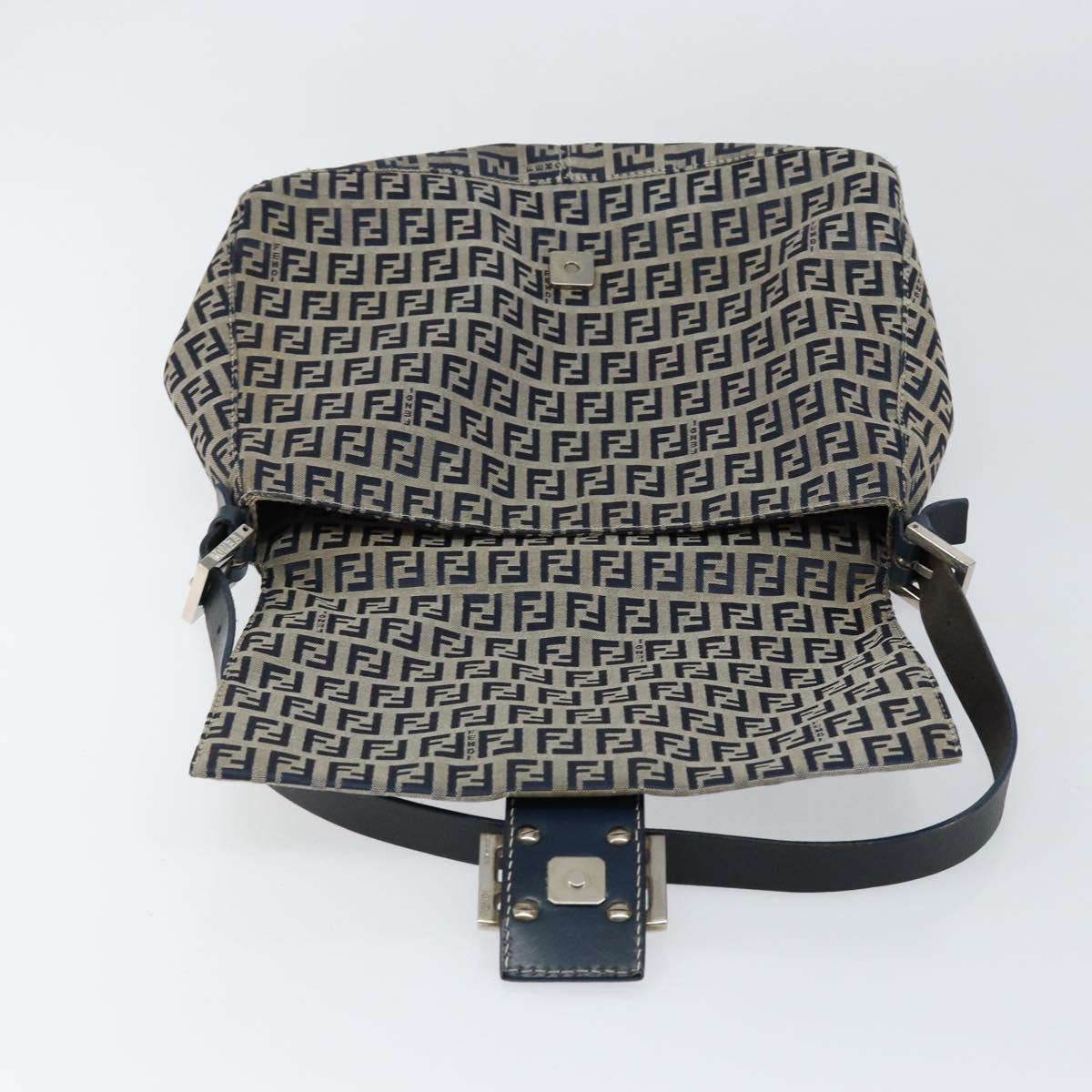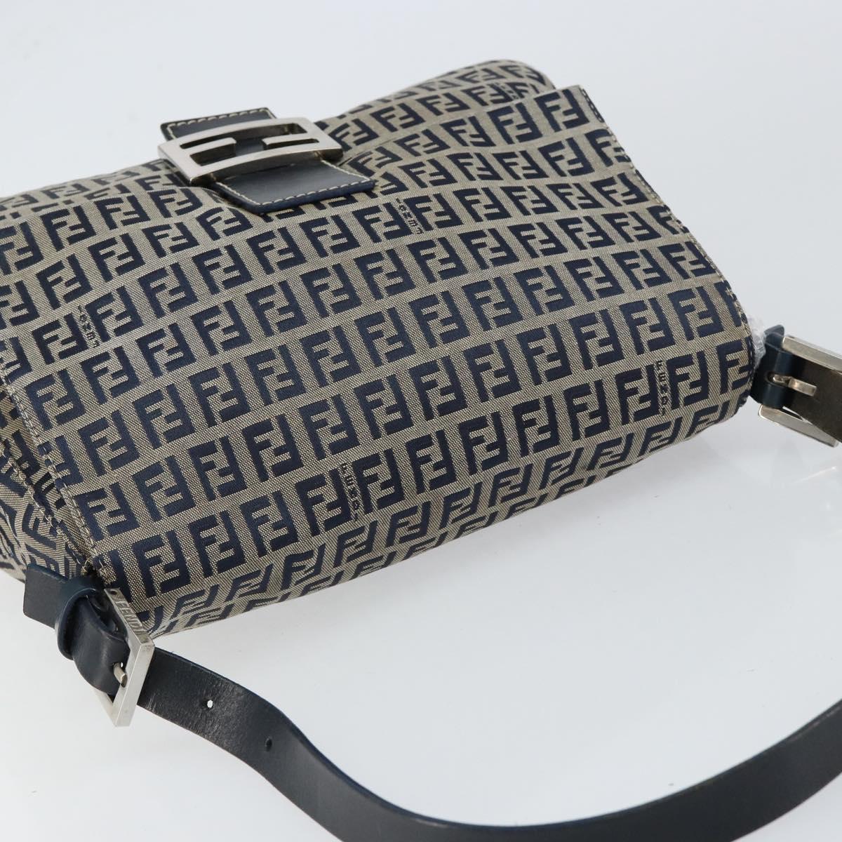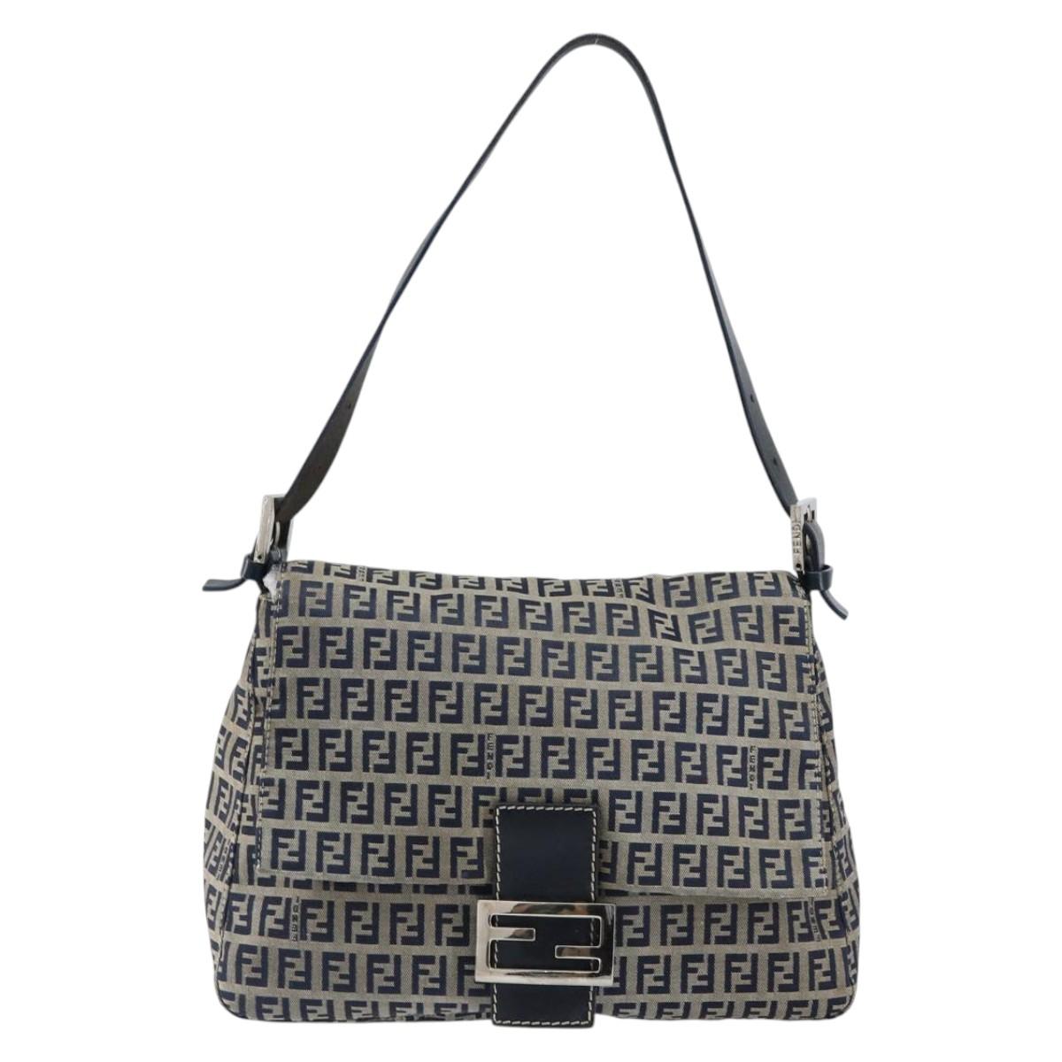 FENDI Zucchino Canvas Mamma Baguette Tote Bag Navy Silver - 147547
