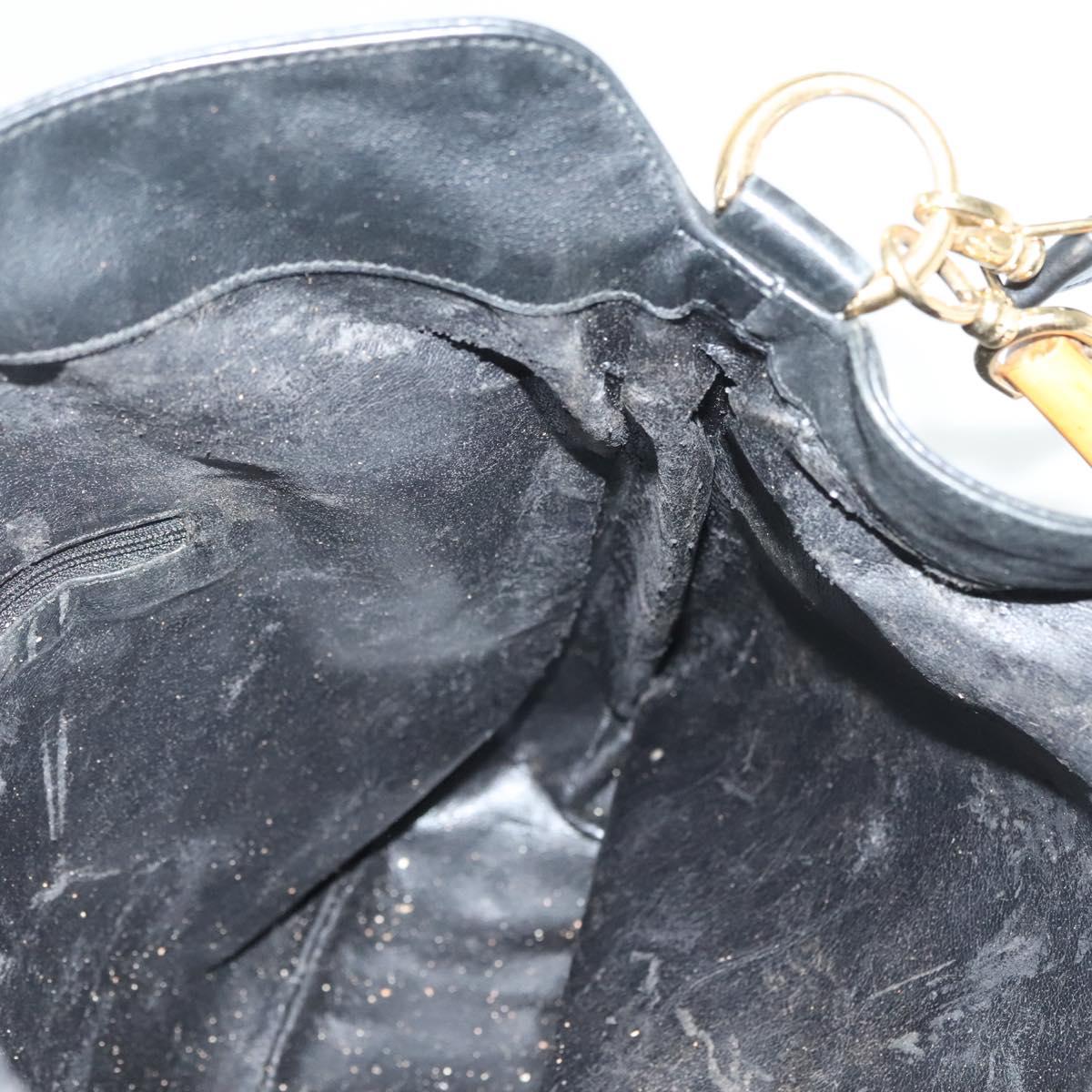 GUCCI Bamboo Hand Bag Leather 2way Black Gold 001 1577 3754 - ep10036
