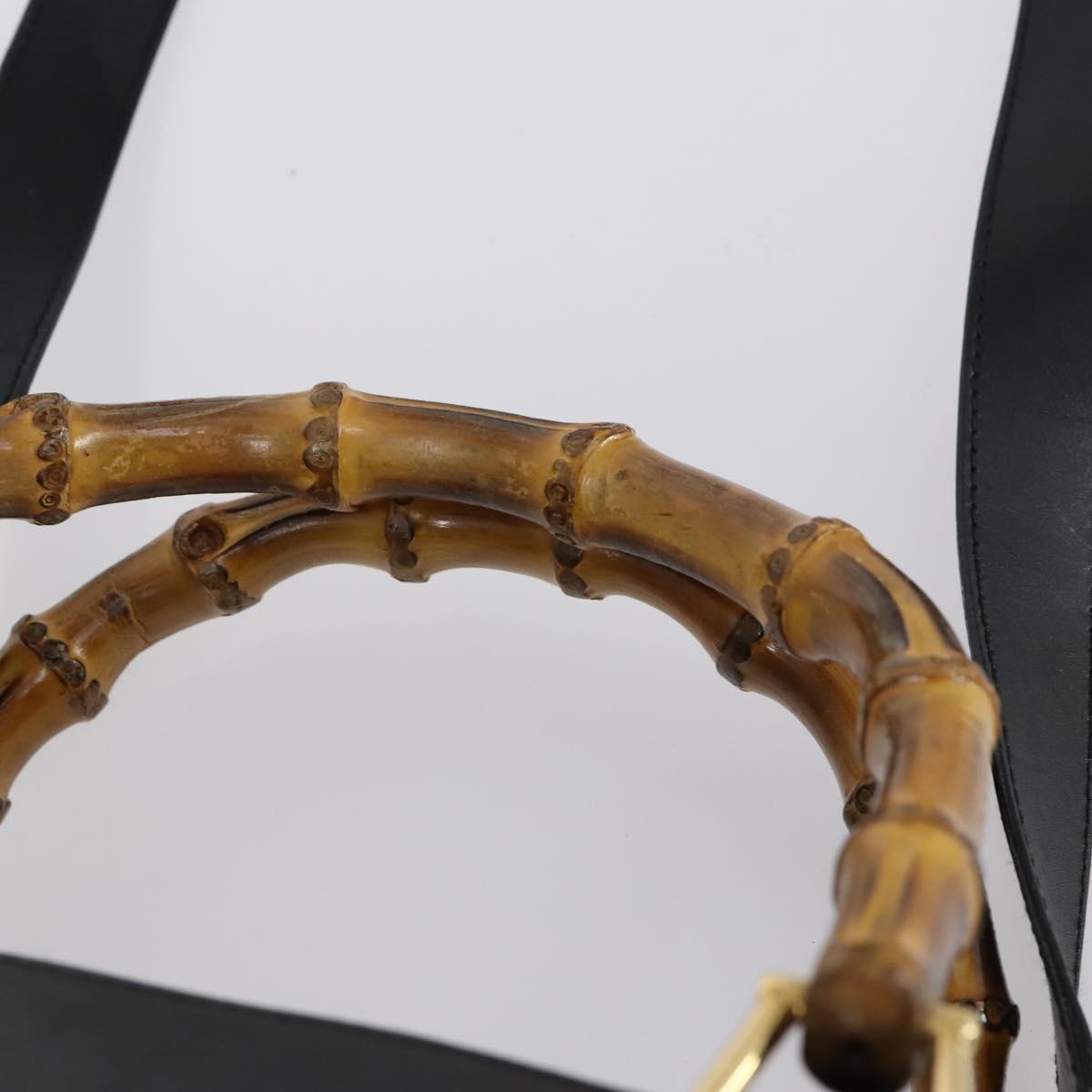 GUCCI Bamboo Hand Bag Leather 2way Black Gold 002 2855 0322 0 - BA6143