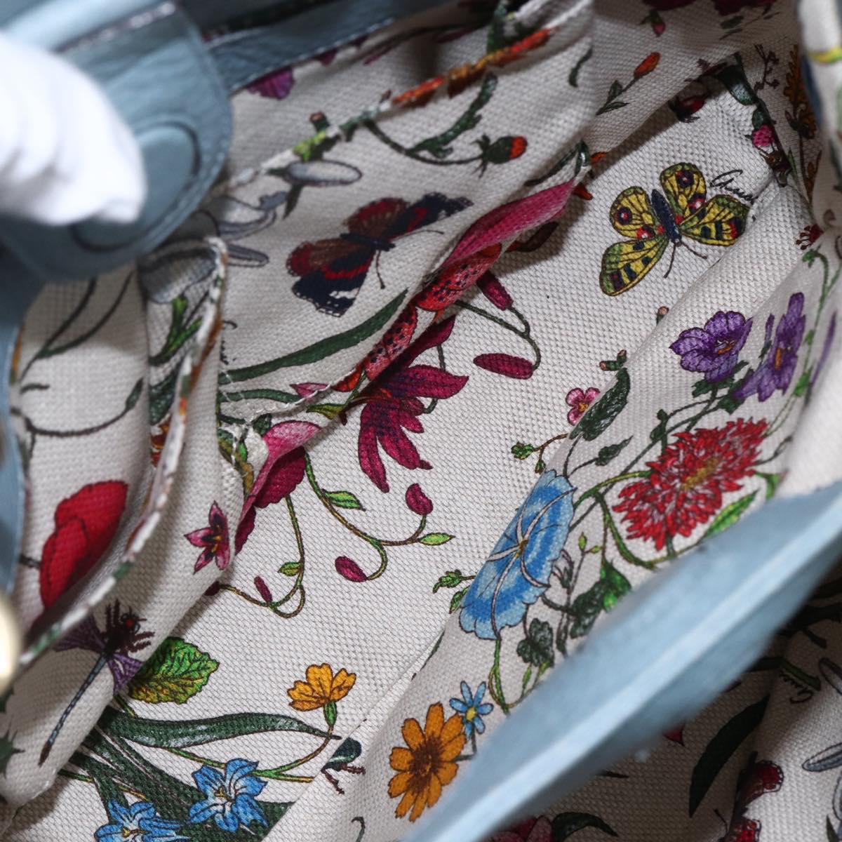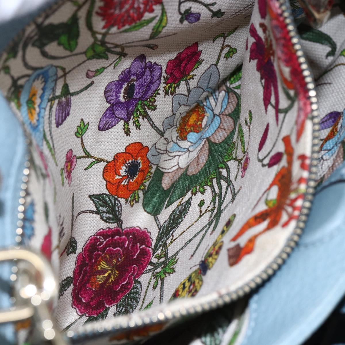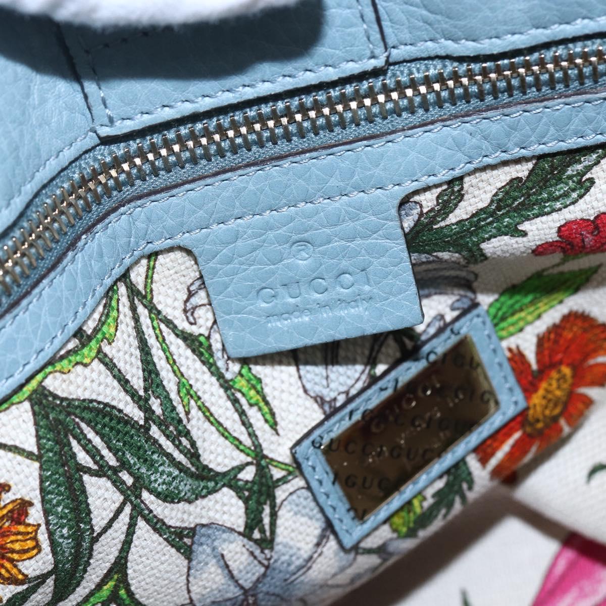 GUCCI Bamboo Hand Bag Leather 2way Blue Silver 336032 - bs30949