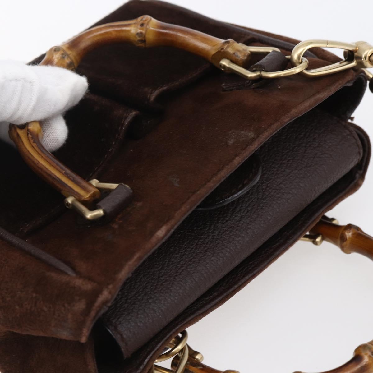 GUCCI Bamboo Hand Bag Suede 2way Brown Gold 007 1793 0238 - BA7262
