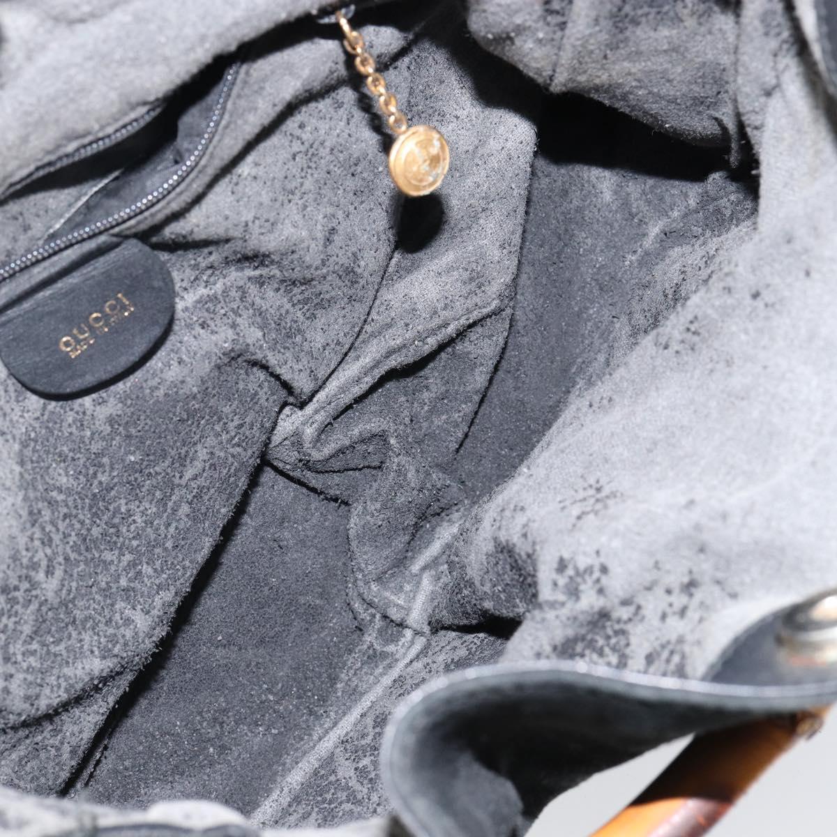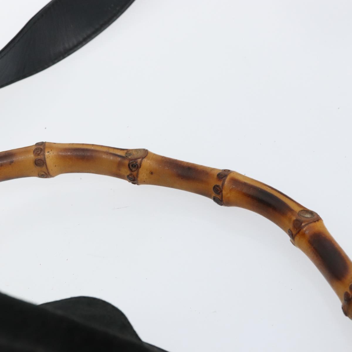 GUCCI Bamboo Hand Bag Suede Leather 2way Black Gold 001 3754 1638 - 143211