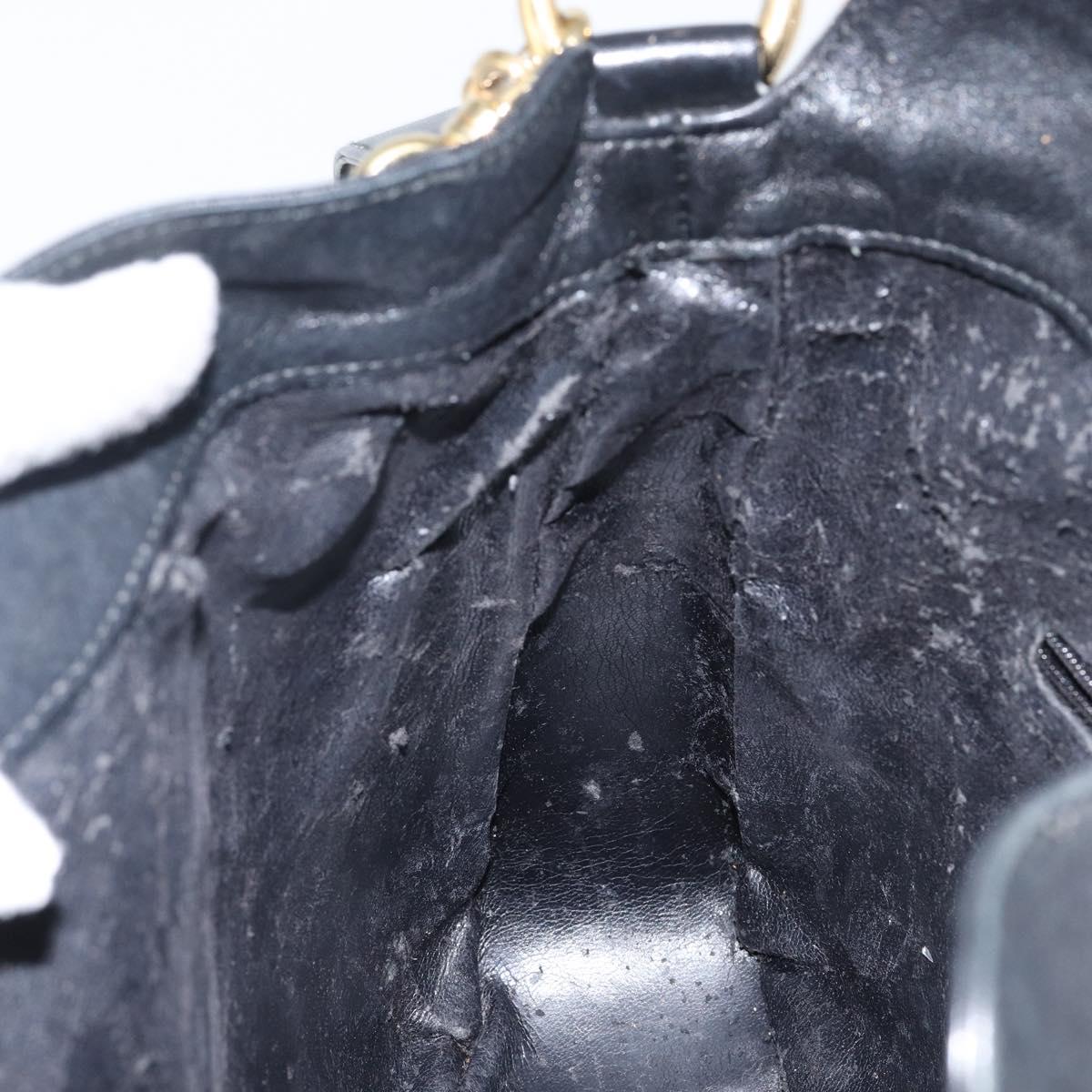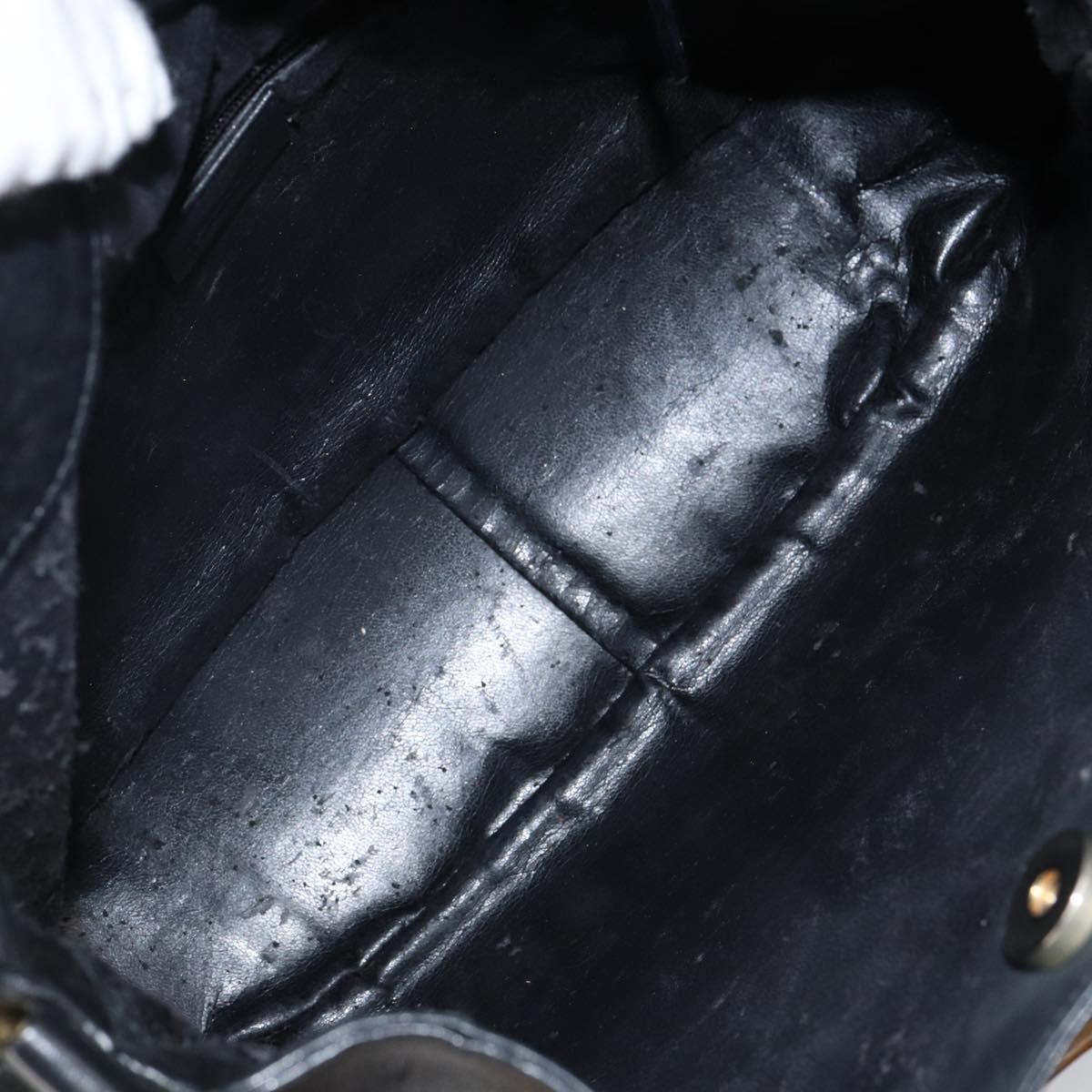 GUCCI Bamboo Shoulder Bag Leather 2way Black Gold 001 1638 - 142796