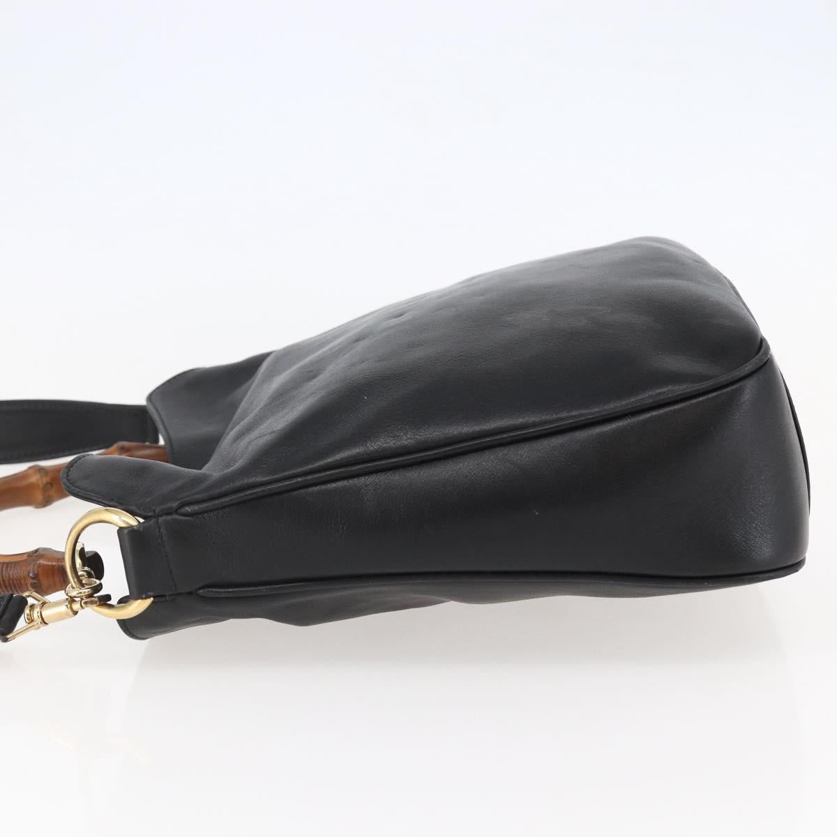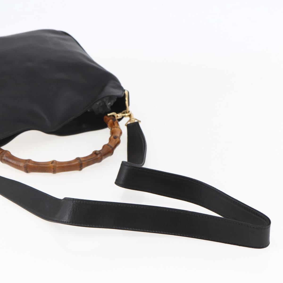 GUCCI Bamboo Shoulder Bag Leather 2way Black Gold 001 1705 1638 - 145008