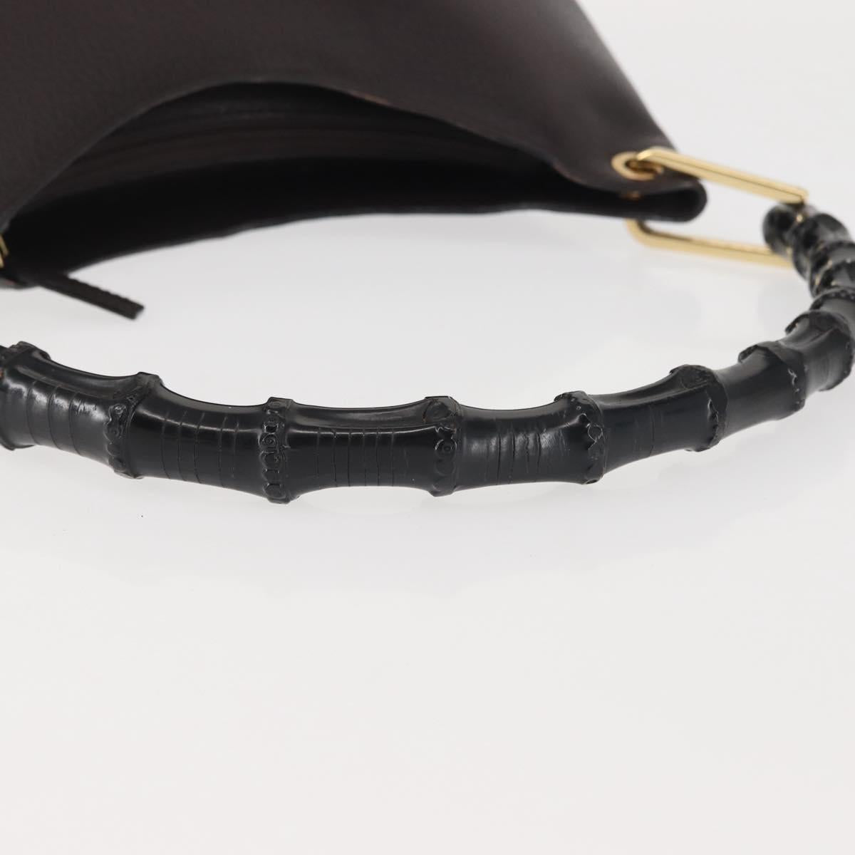 GUCCI Bamboo Shoulder Bag Leather Dark Brown Gold 001 3008 - 144134