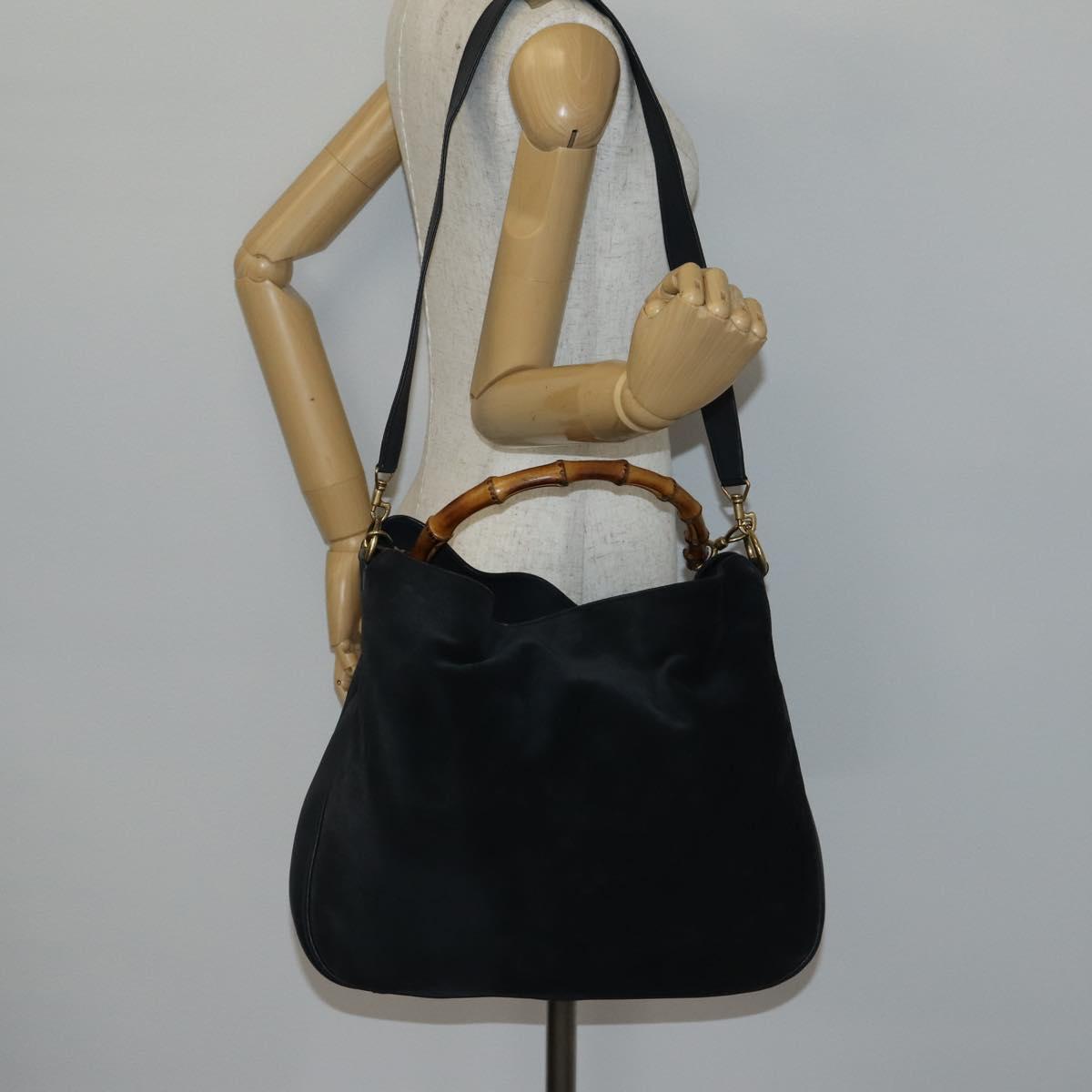 GUCCI Bamboo Shoulder Bag Suede 2way Black Gold 001 1781 1577 - 141499
