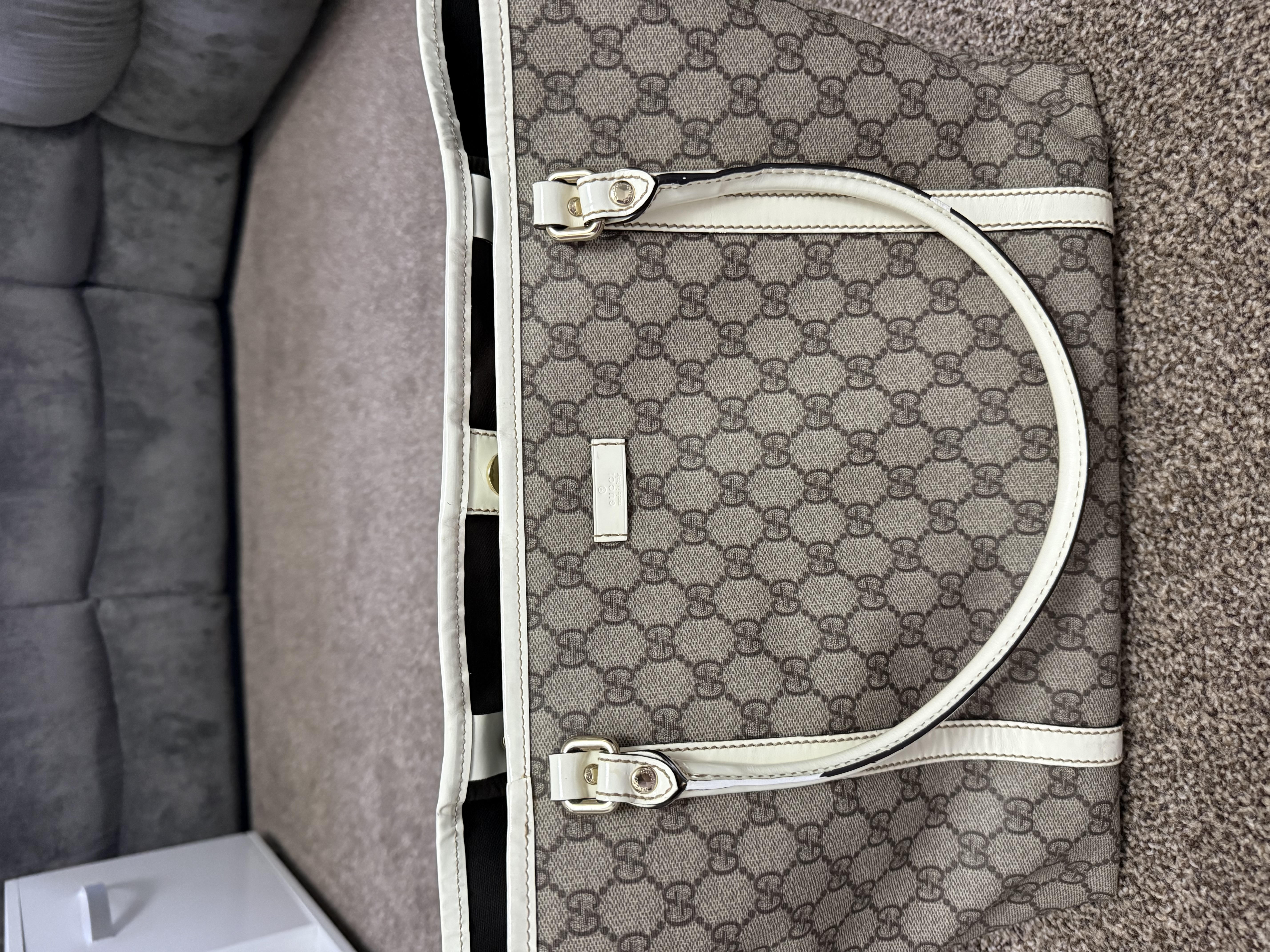 Gucci cloth tote handbag.