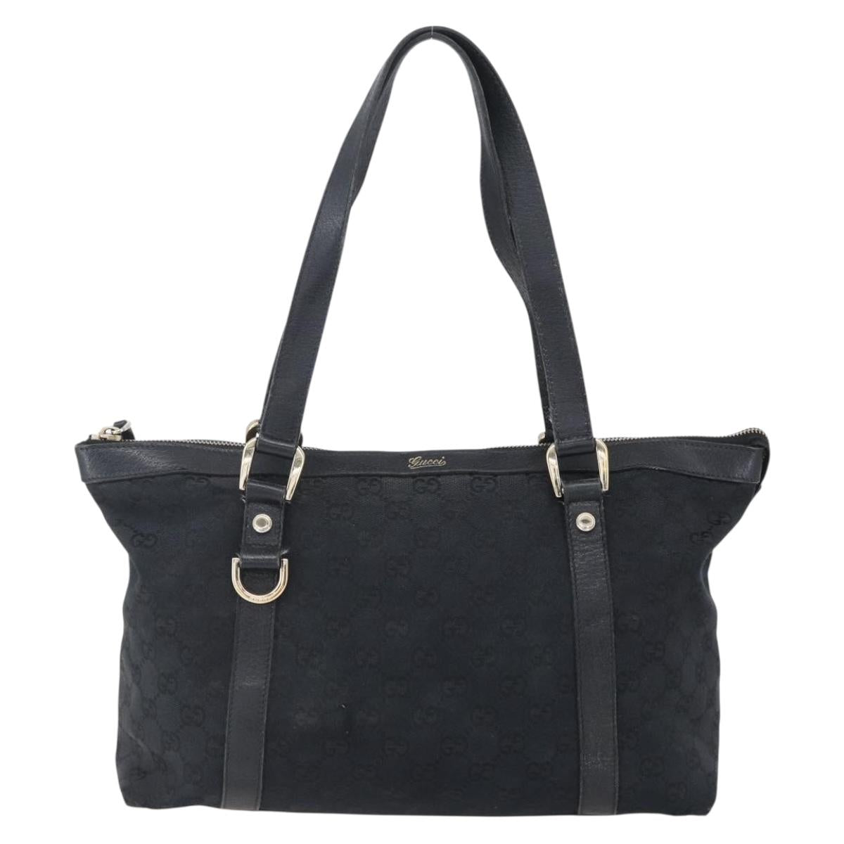 GUCCI GG Canvas Abbey Tote Bag Black Gold 141470 - BA7477