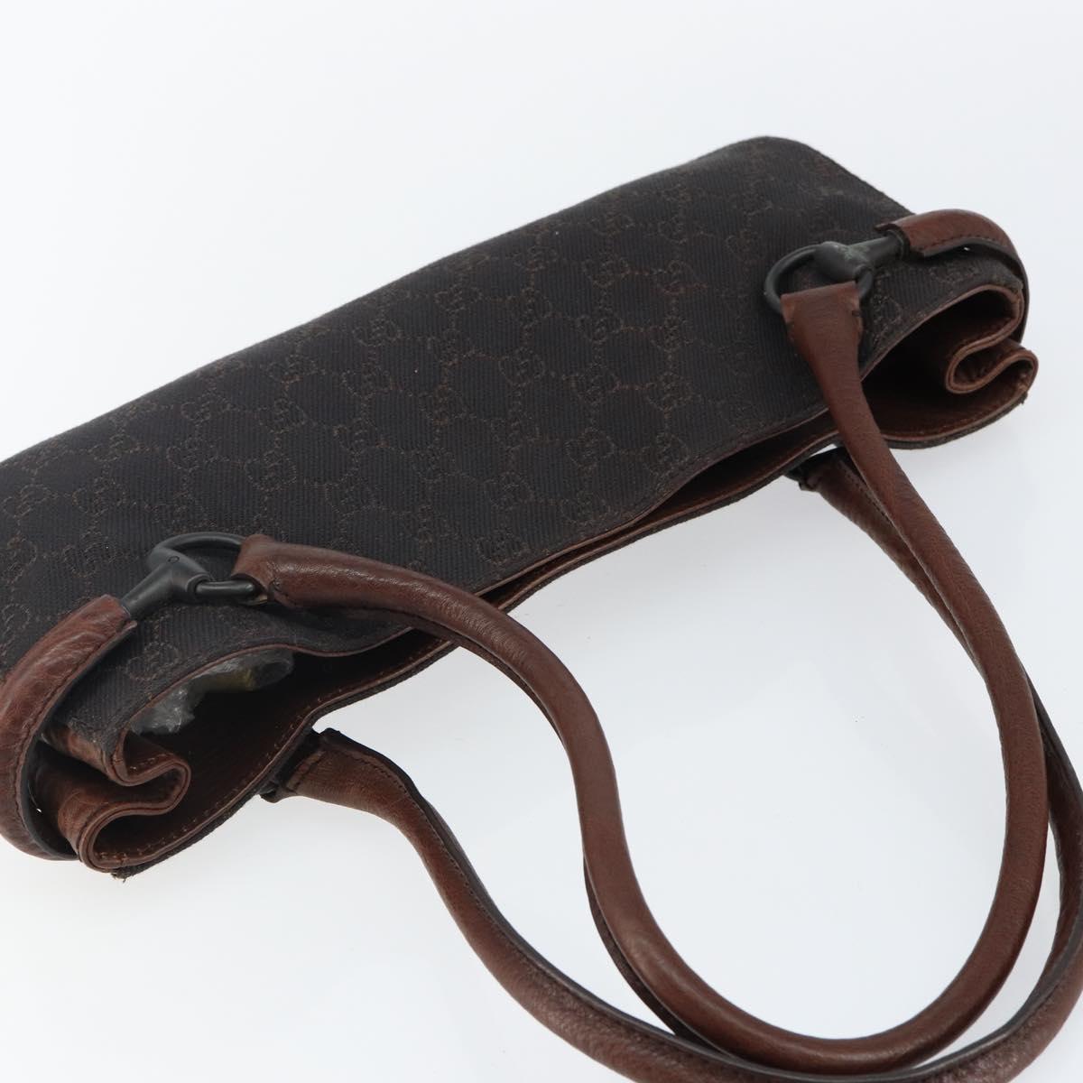 GUCCI GG Canvas Horsebit Shoulder Bag Black Silver 101345 - 143774