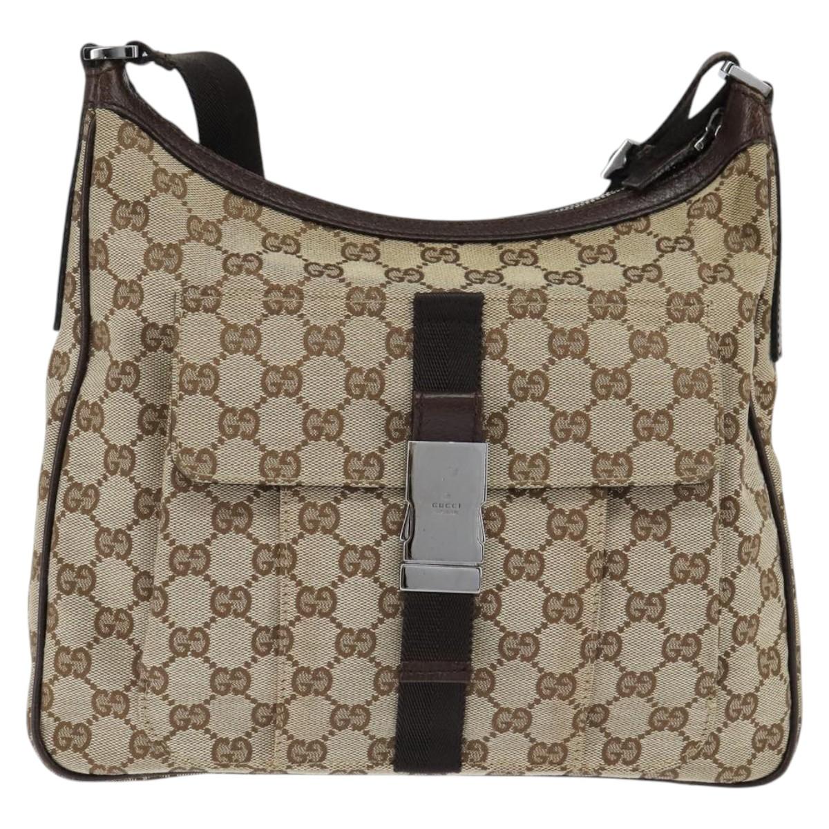 GUCCI GG Canvas Shoulder Bag Beige Silver 131211 - 147872