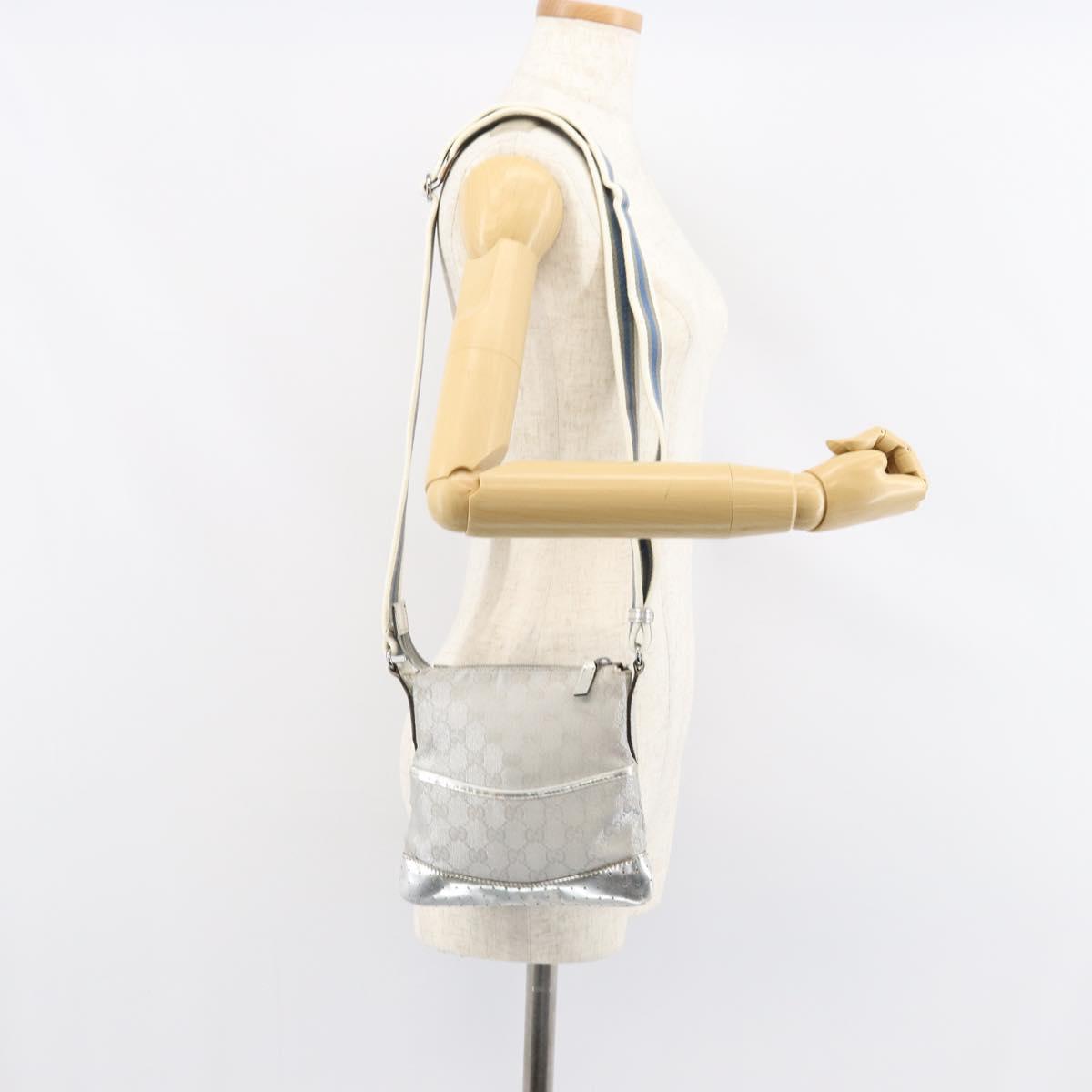 GUCCI GG Canvas Shoulder Bag Silver 147671 - 155220