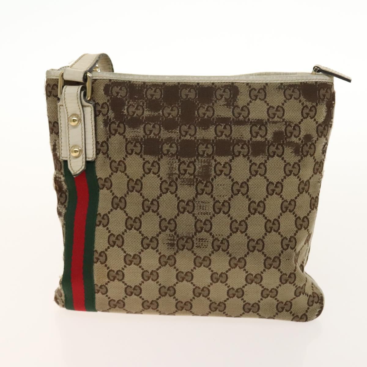 GUCCI GG Canvas Web Sherry Line Bag Leather 2Set Beige Black - 139097
