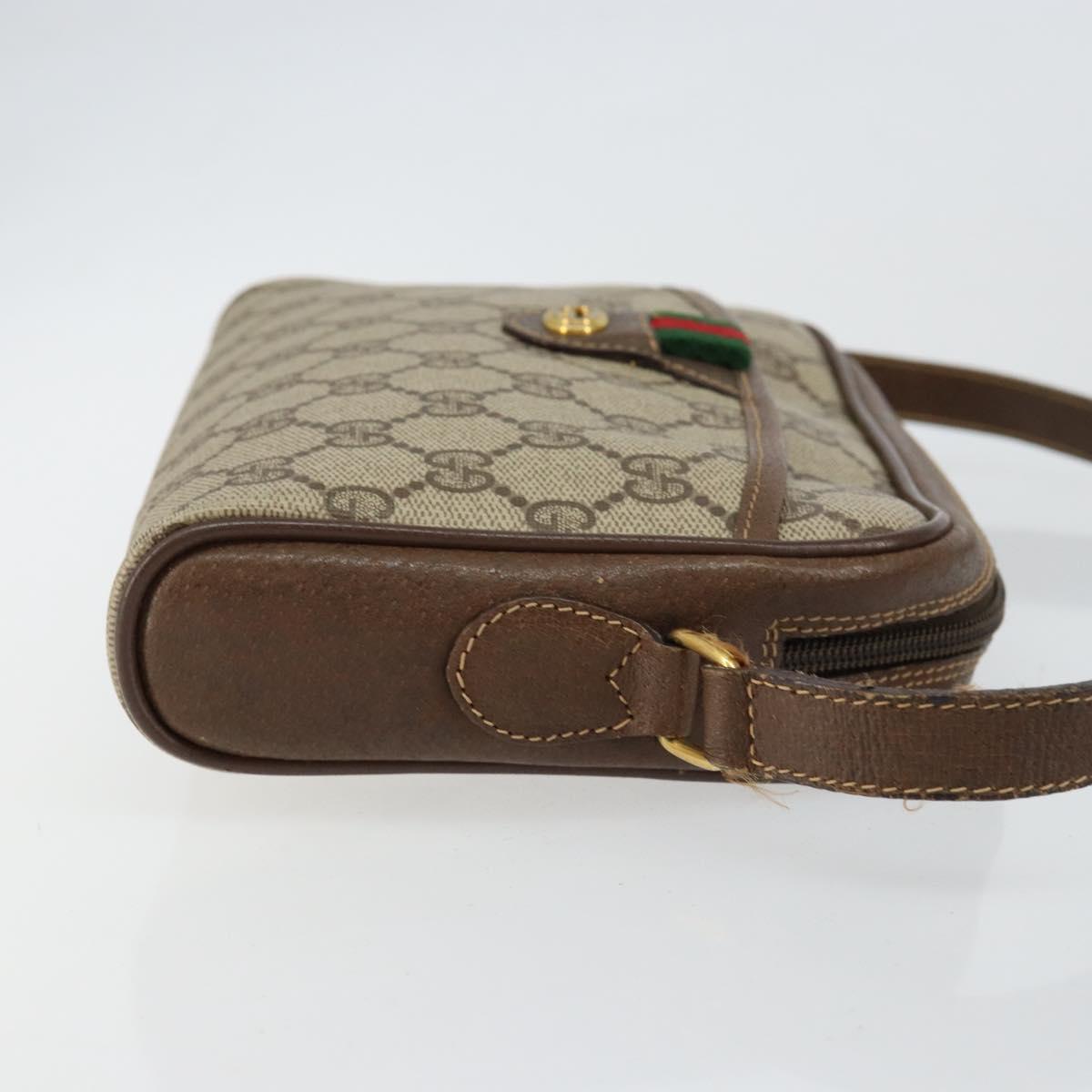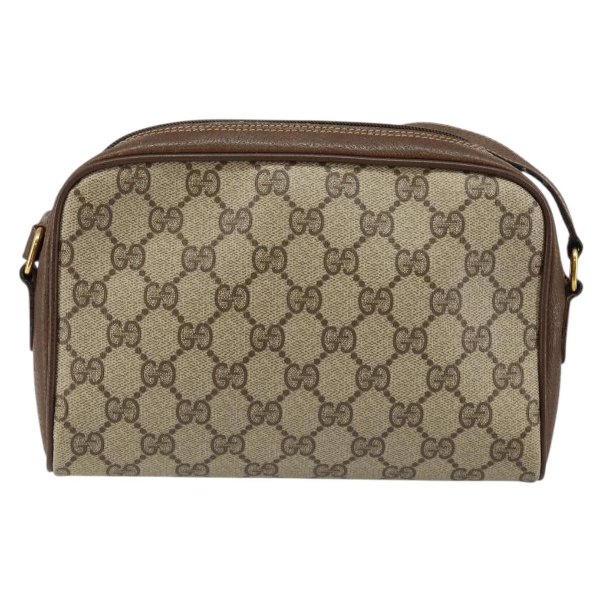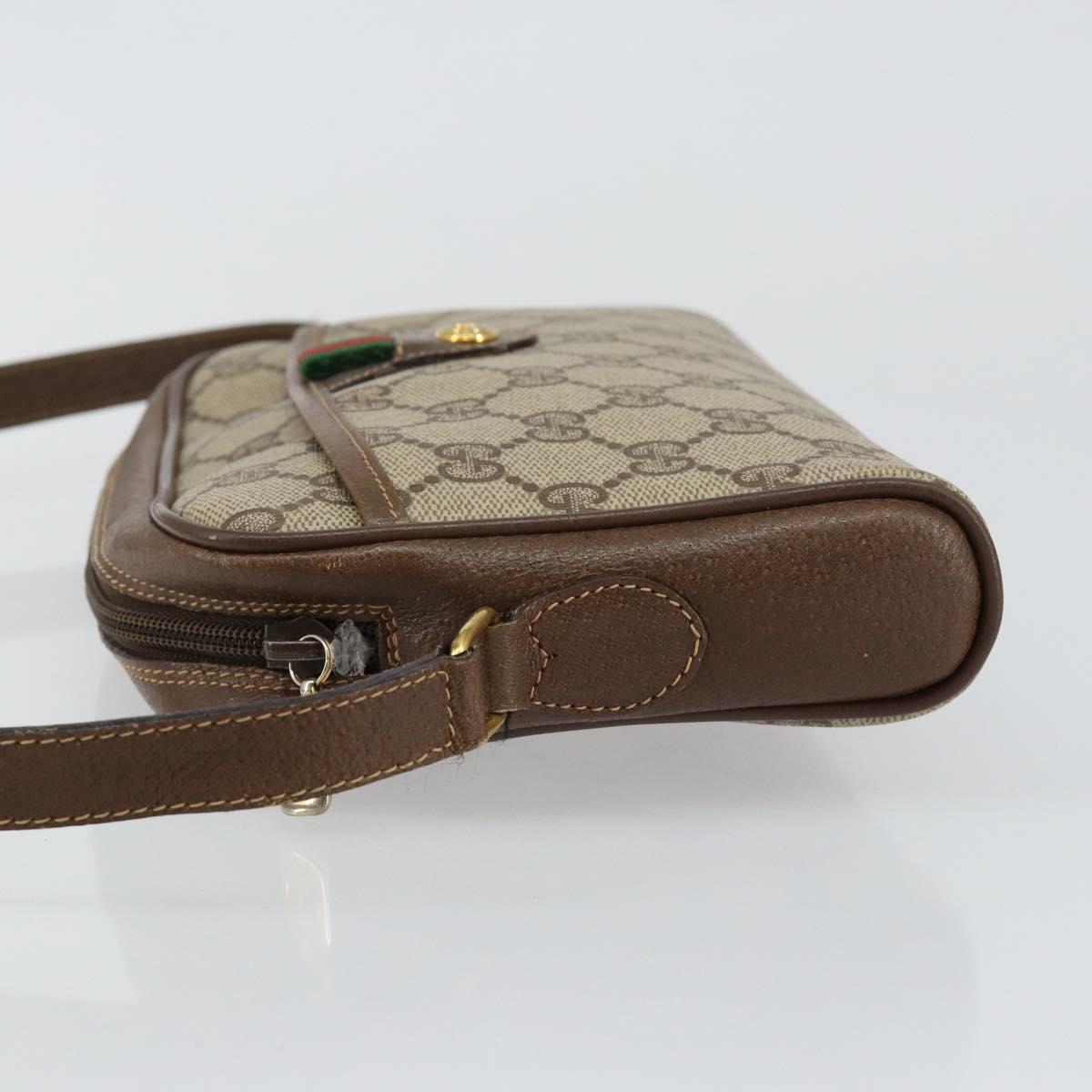 GUCCI GG Canvas Web Sherry Line Shoulder Bag PVC Leather Beige Red - 146150