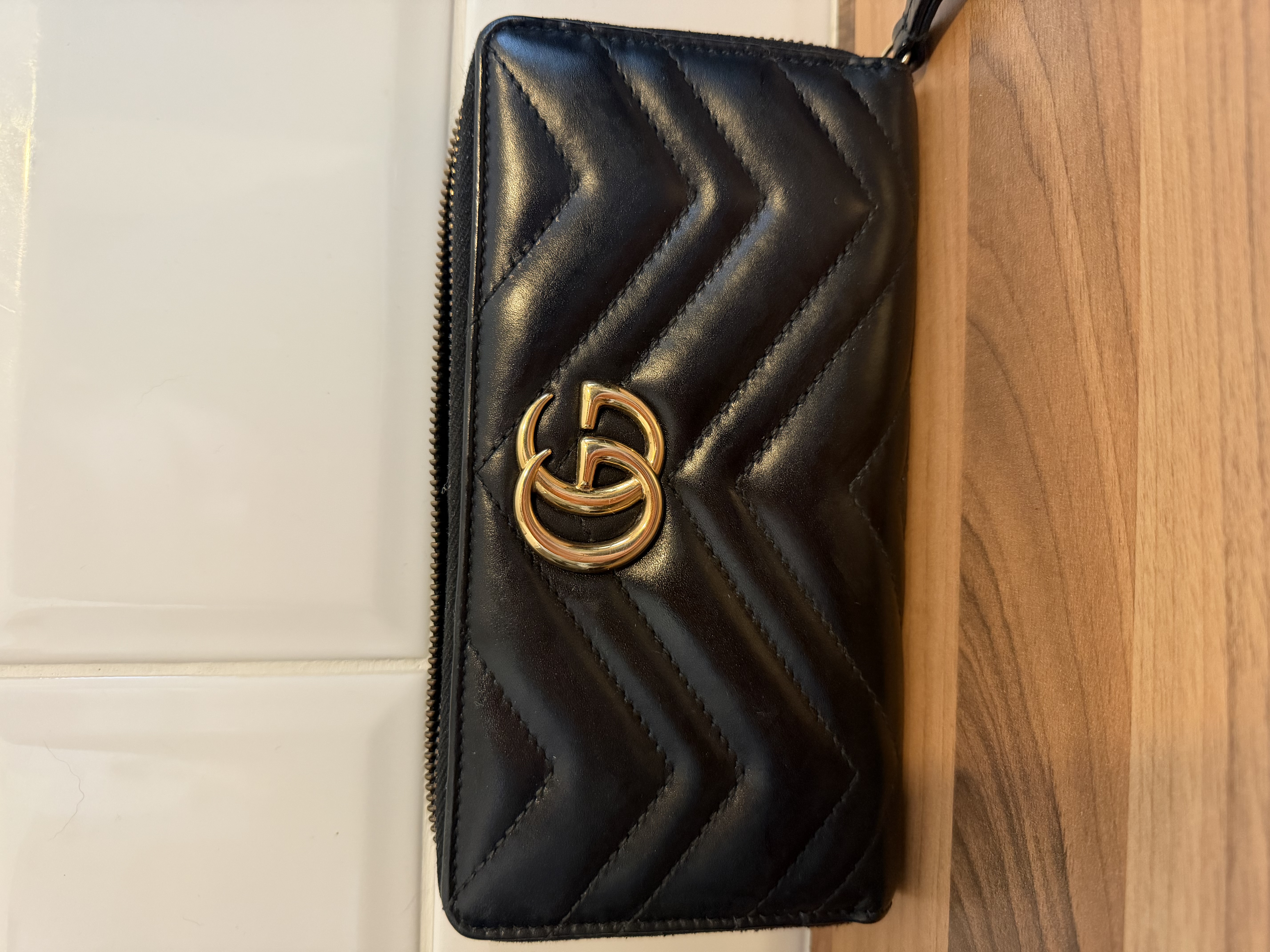 Gucci GG Marmont Leather Zip Round Wallet Black