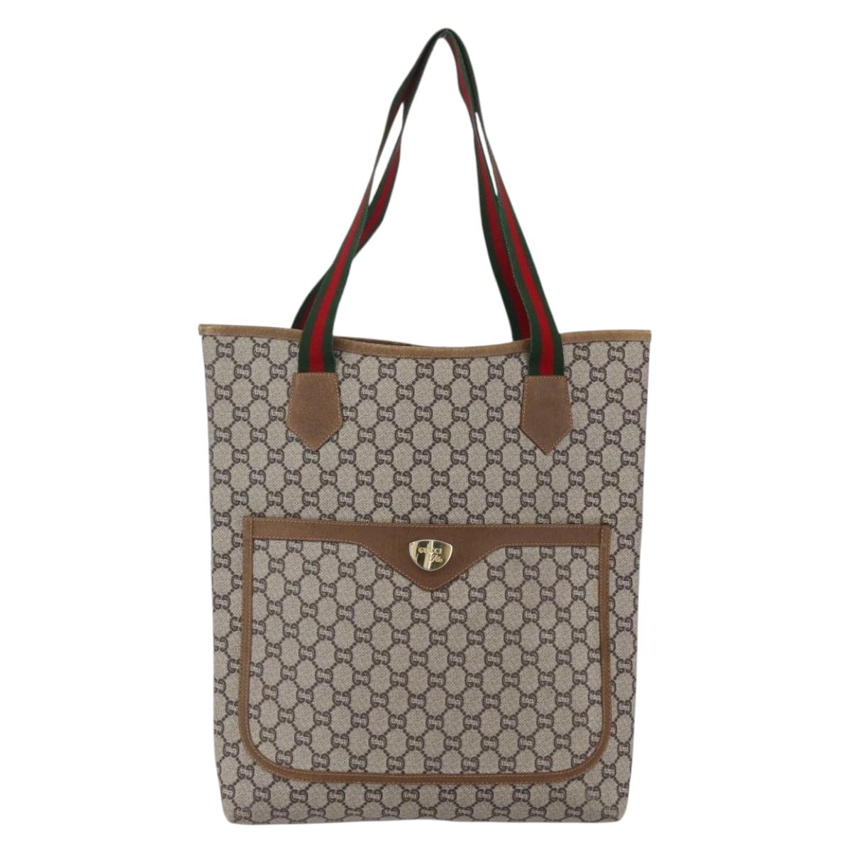GUCCI GG Plus Supreme Web Sherry Line Tote Bag PVC Beige Red Green - 148852