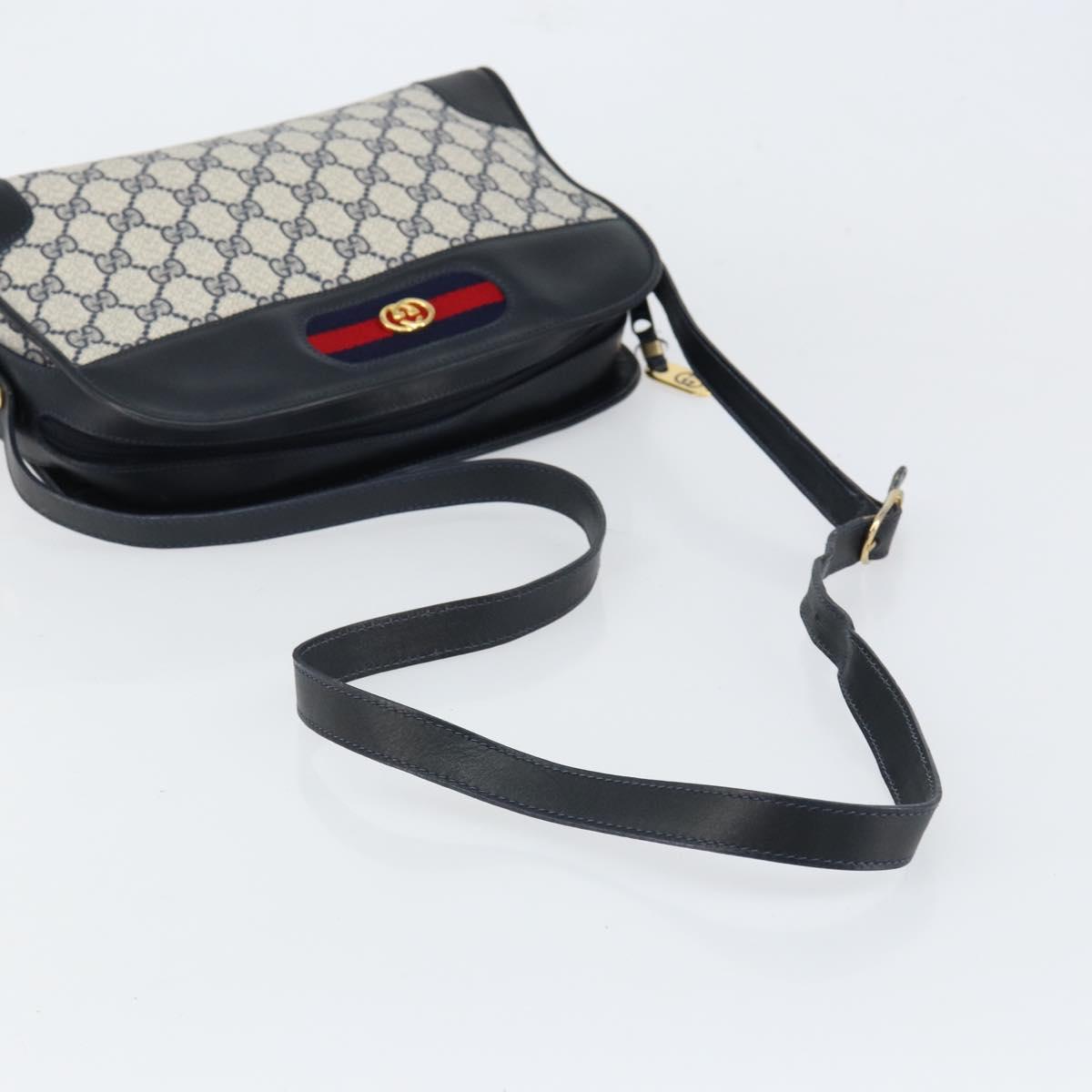 GUCCI GG Supreme Sherry Line Shoulder Bag PVC Navy Gold - 154161