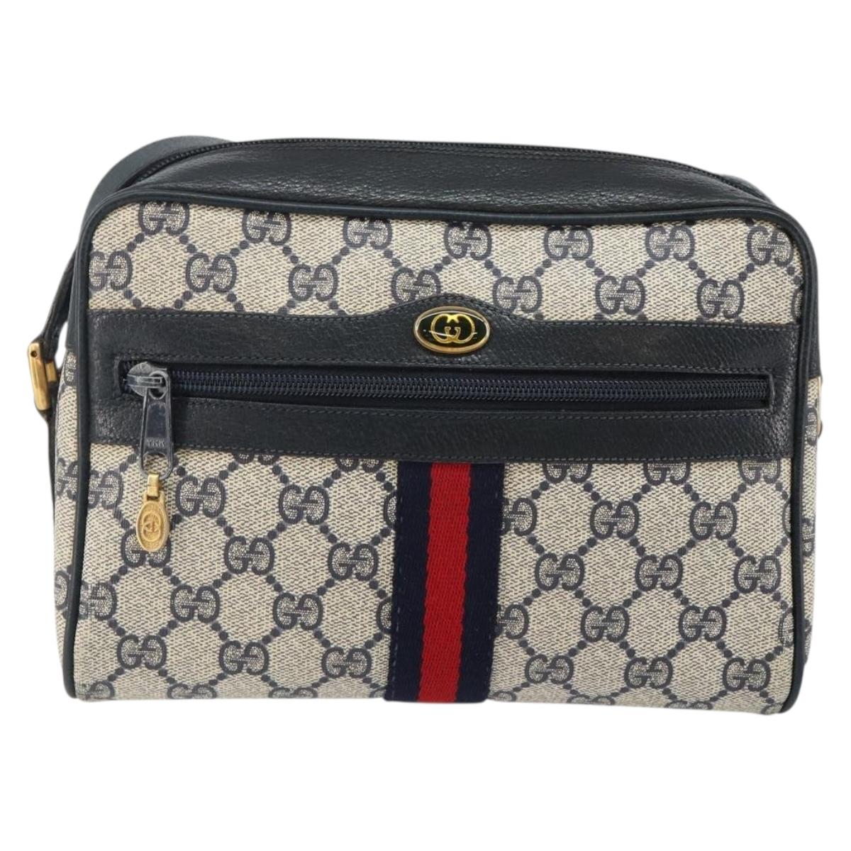 GUCCI GG Supreme Sherry Line Shoulder Bag PVC Navy Gold 68 02 004 - 143204