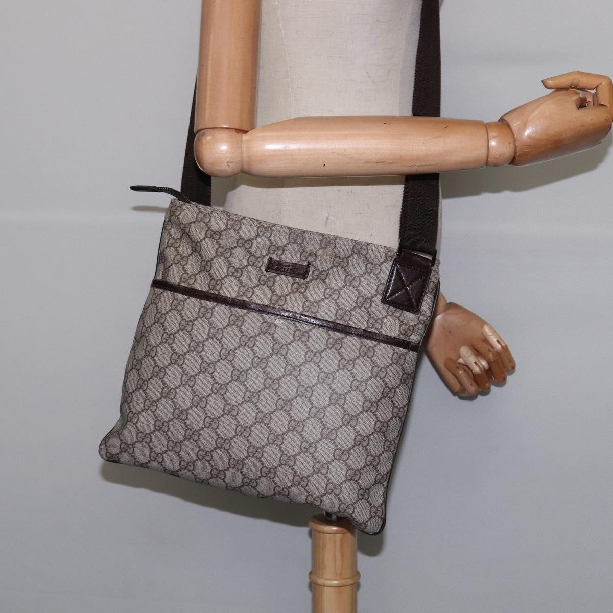 GUCCI GG Supreme Shoulder Bag PVC Beige Silver 141626 - 144131