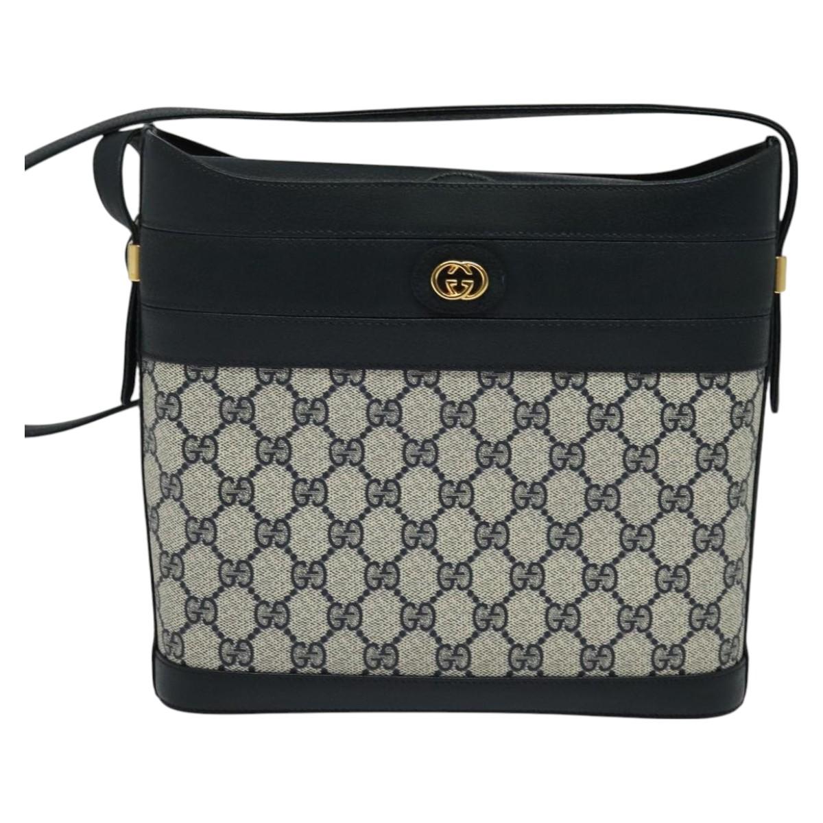 GUCCI GG Supreme Shoulder Bag PVC Navy Gold 001 109 0579 - 129552