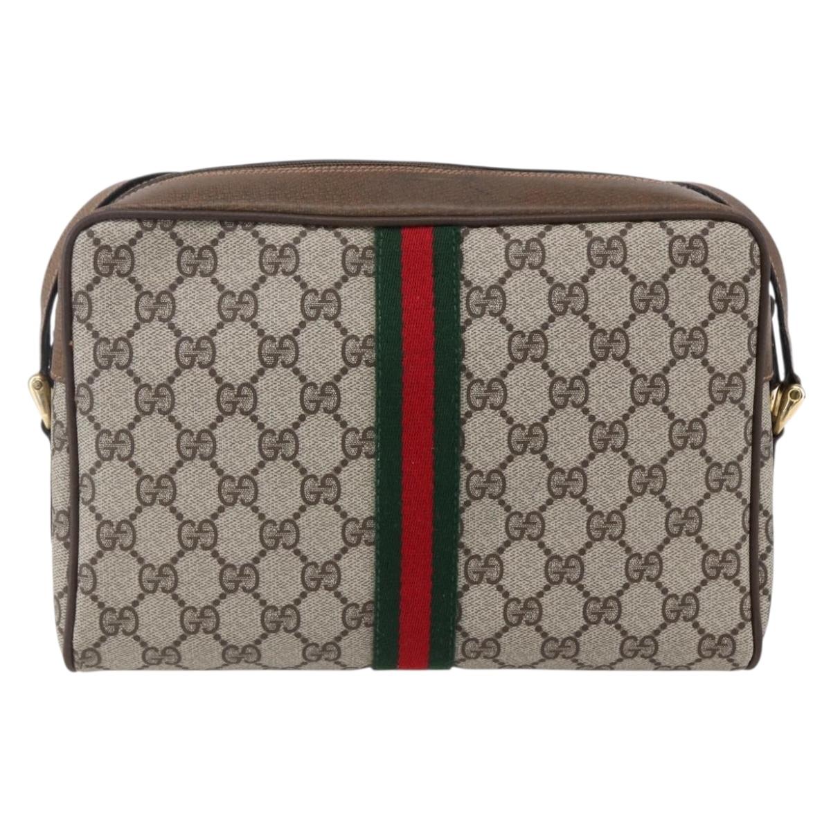 GUCCI GG Supreme Web Sherry Line Shoulder Bag PVC Beige Gold - BA7456
