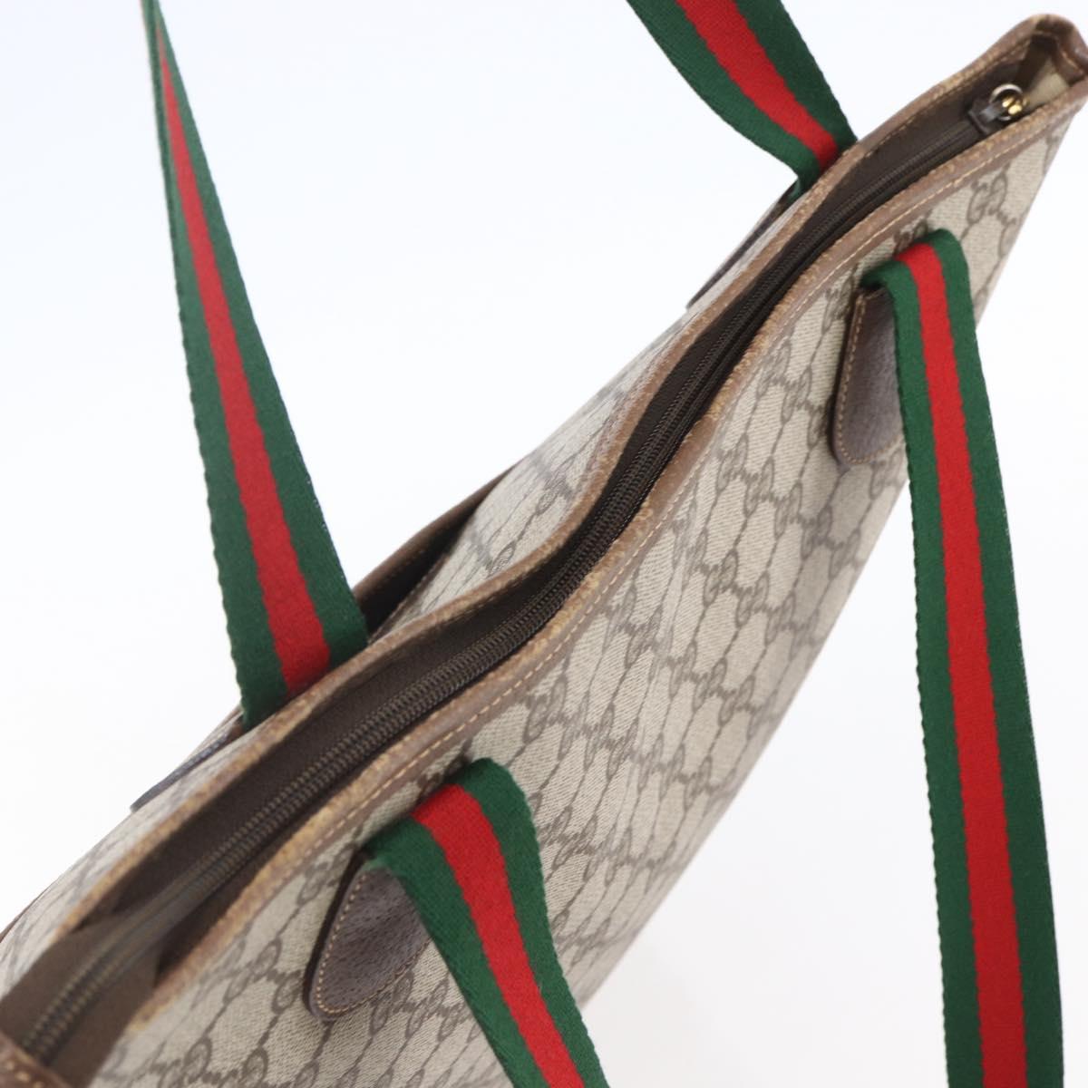 GUCCI GG Supreme Web Sherry Line Tote Bag PVC Beige Gold 002 39 0163 - th6468