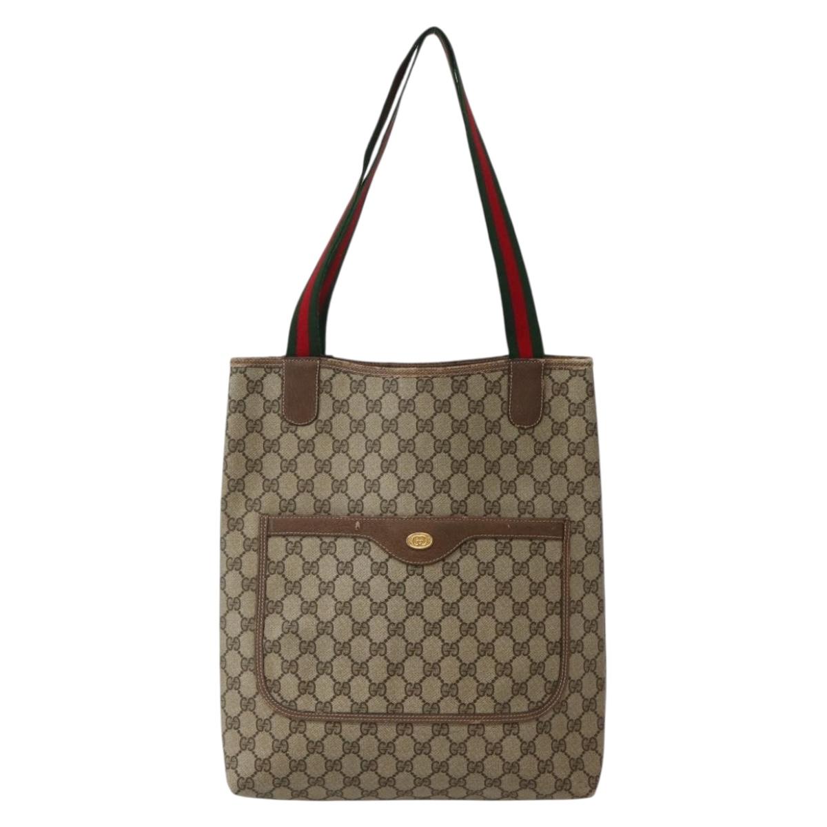 GUCCI GG Supreme Web Sherry Line Tote Bag PVC Beige Red 39 02 003 - bs29508