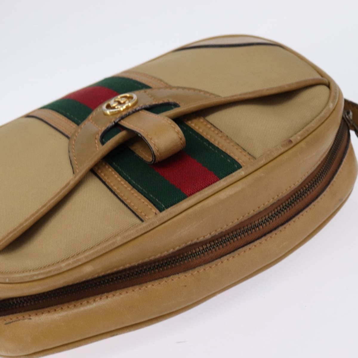 GUCCI Web Sherry Line Shoulder Bag Canvas Leather Beige Gold - BA5901