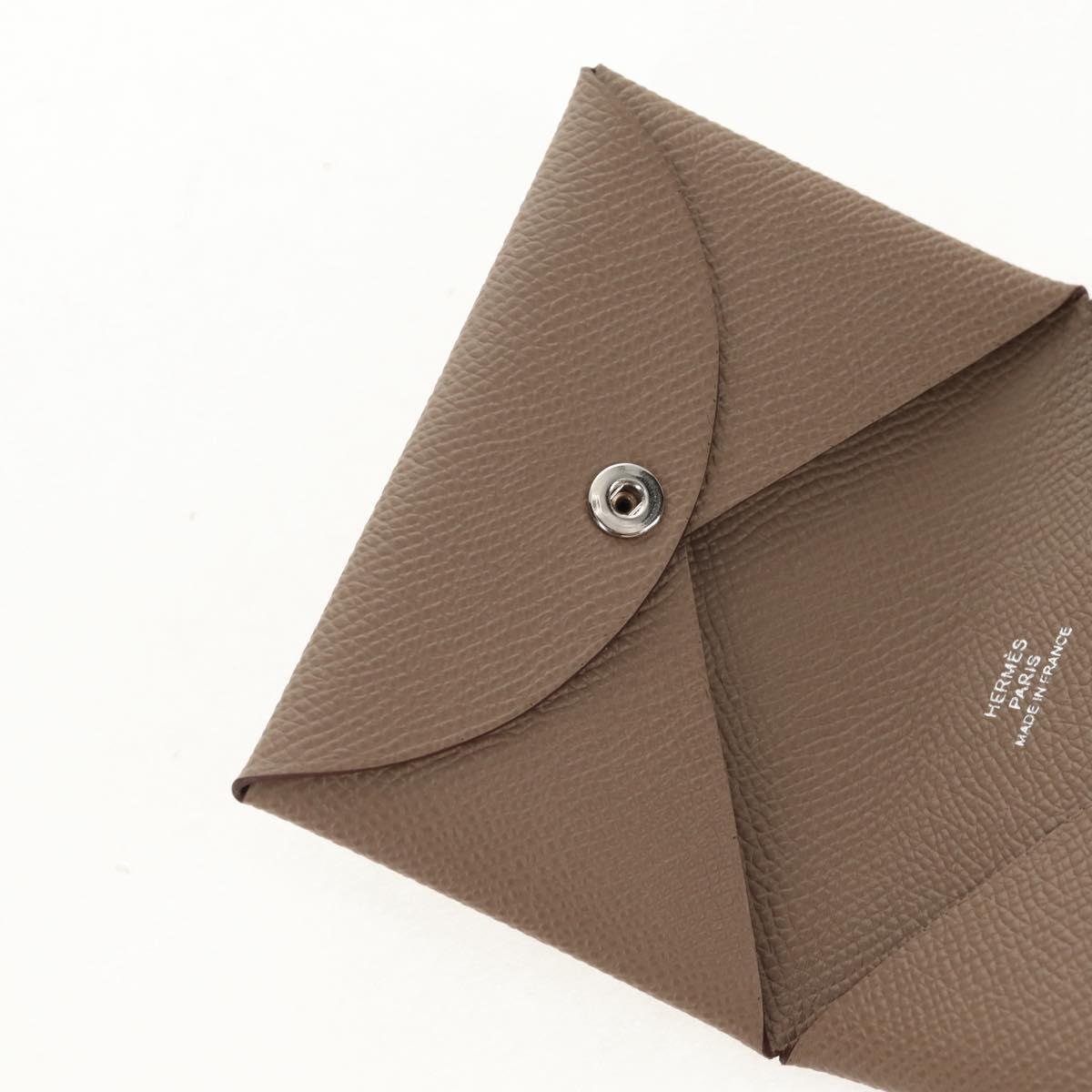 HERMES Calvi Coin Purse Leather Beige Silver - BA8241M
