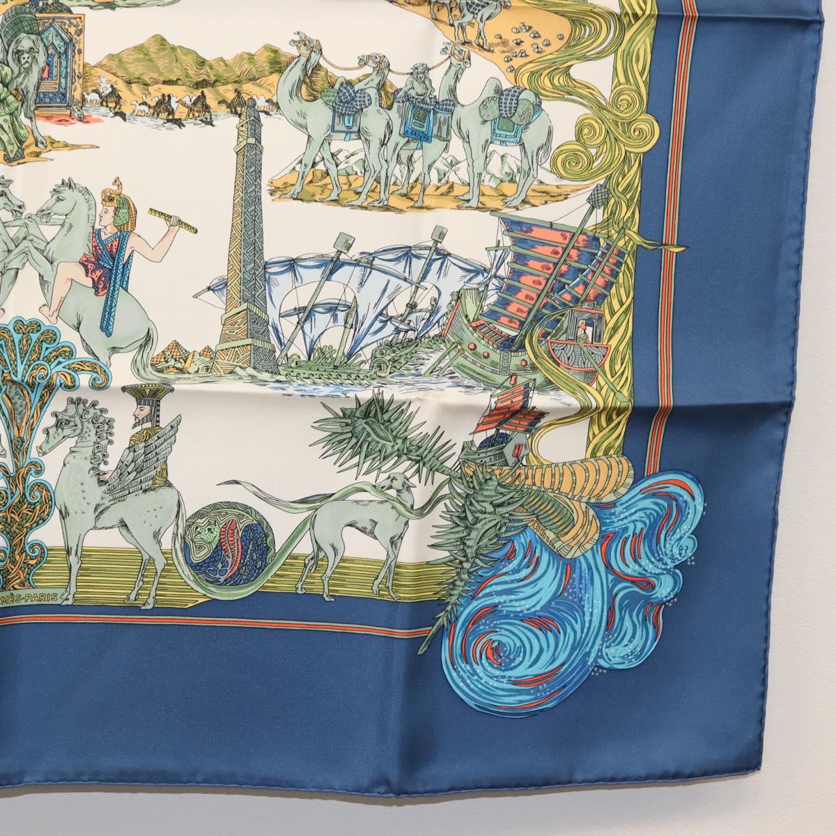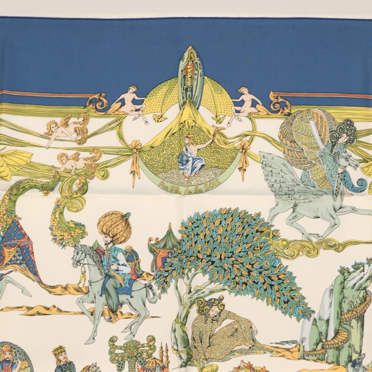 HERMES Carre 90 Scarf ""Au FIL de La SOIE"" Silk Blue - 147568