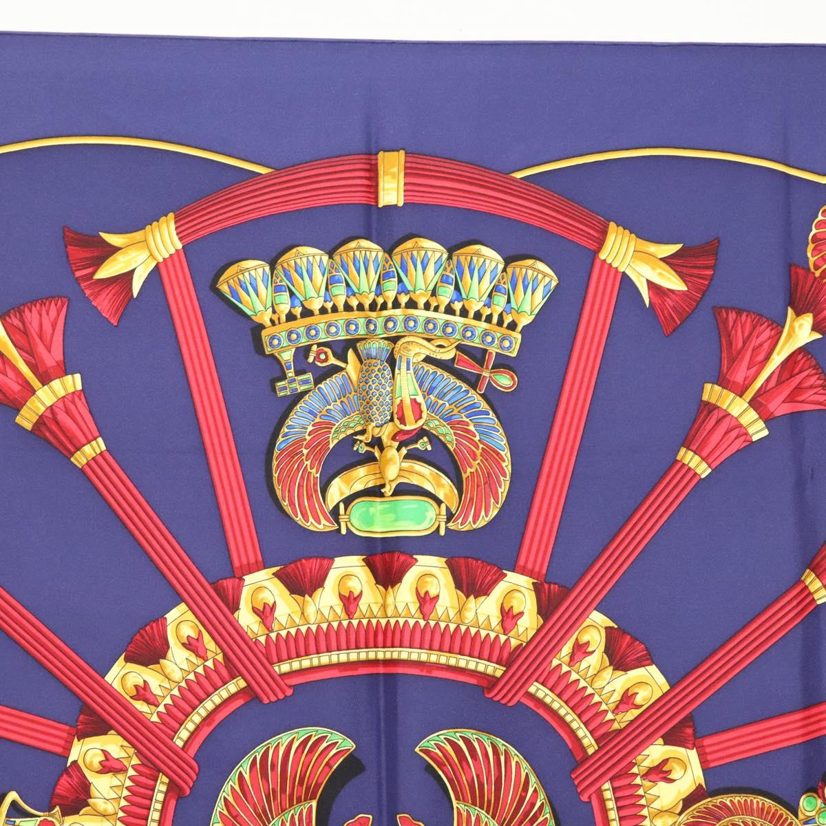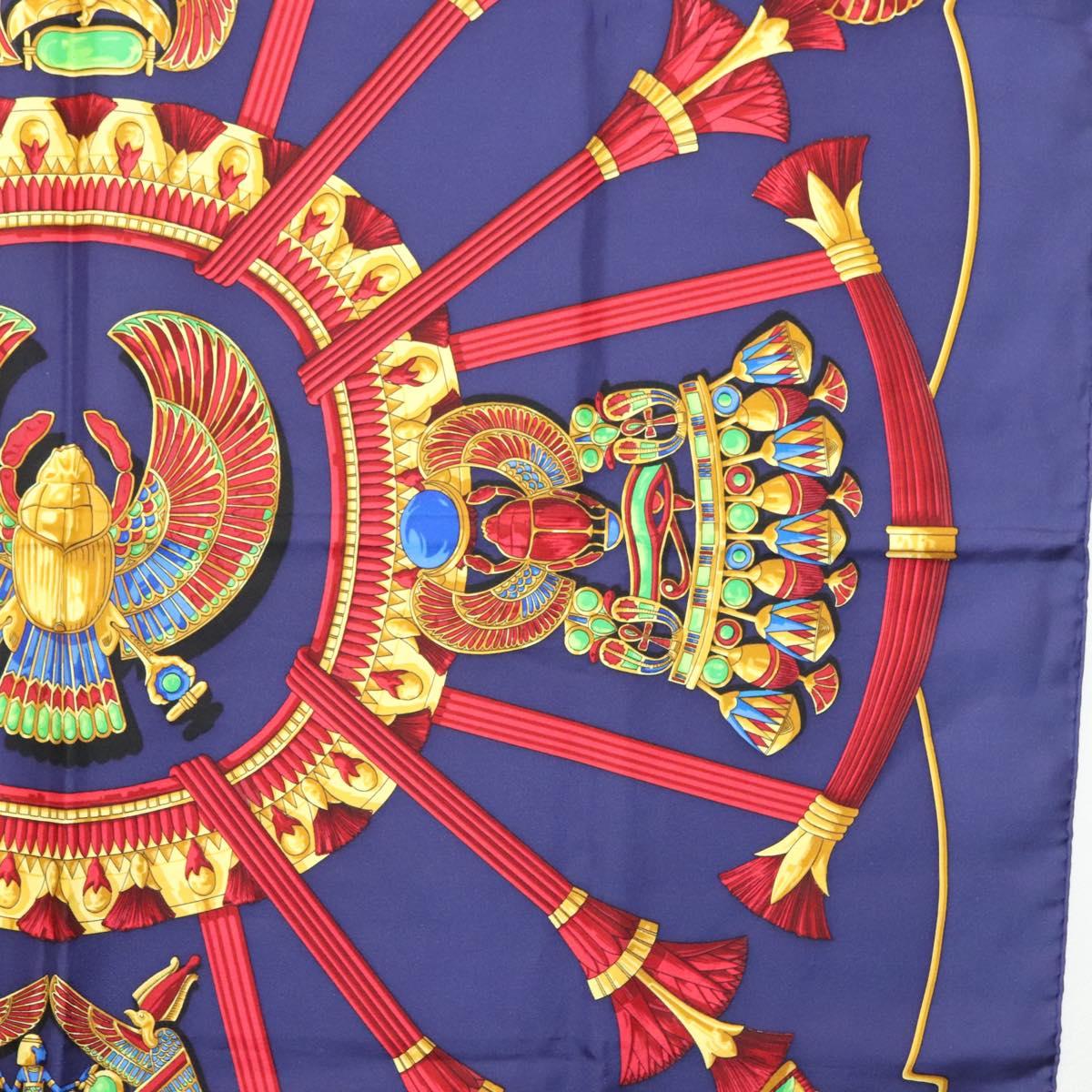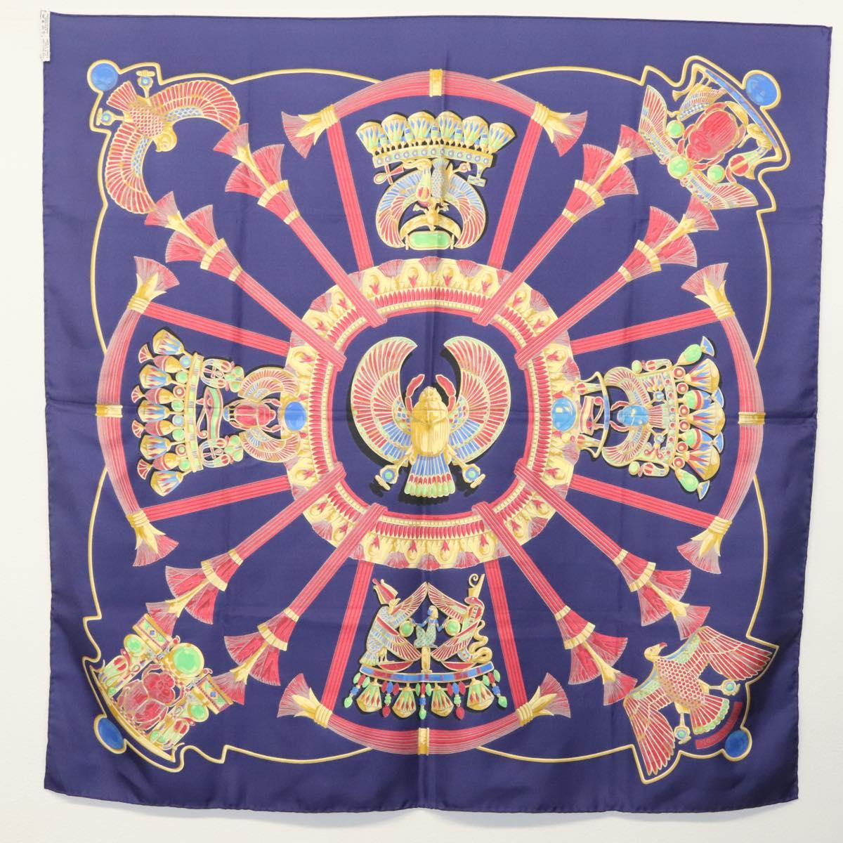 HERMES Caty Ancient Egyptian Scarab Pattern Carre 90 Scarf Silk Blue - 141181