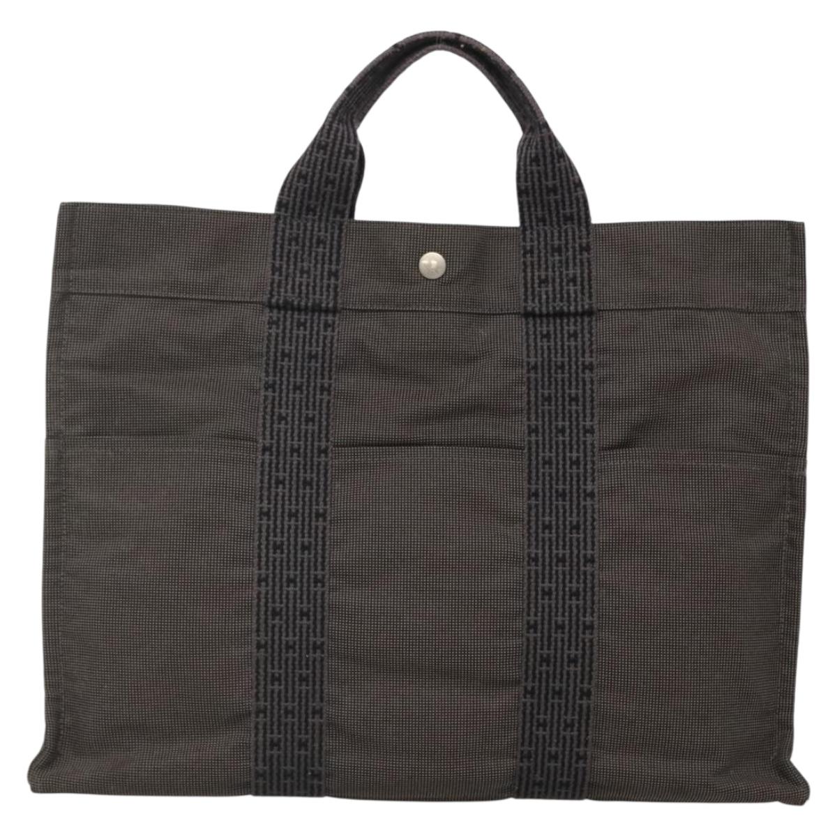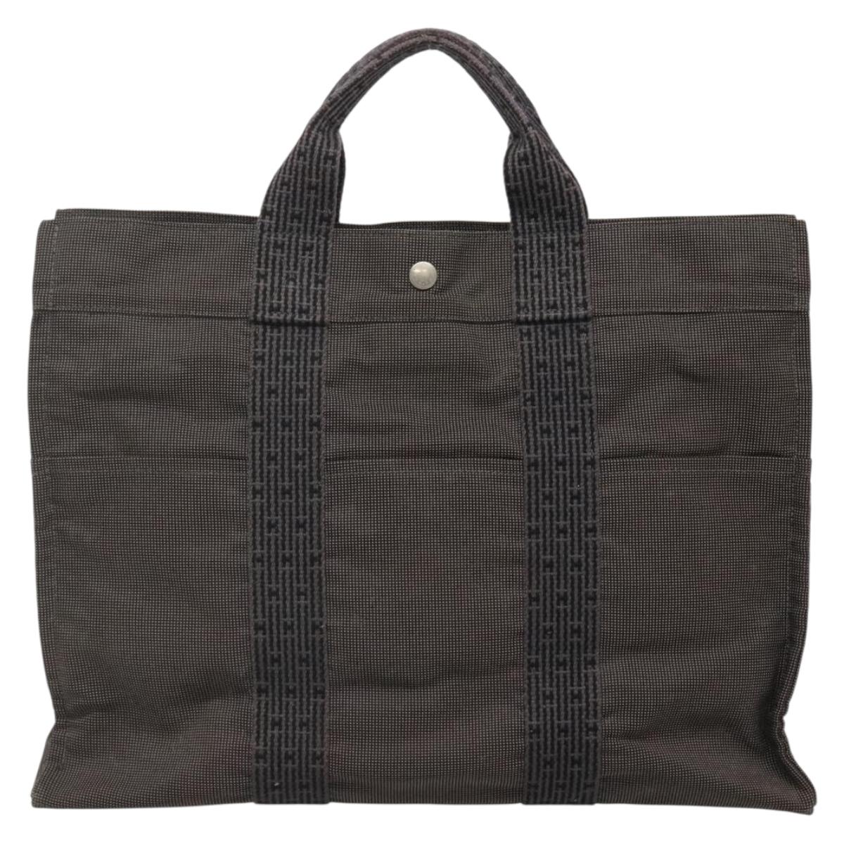 HERMES Her Line MM Hand Bag Canvas Gray Silver - 141483