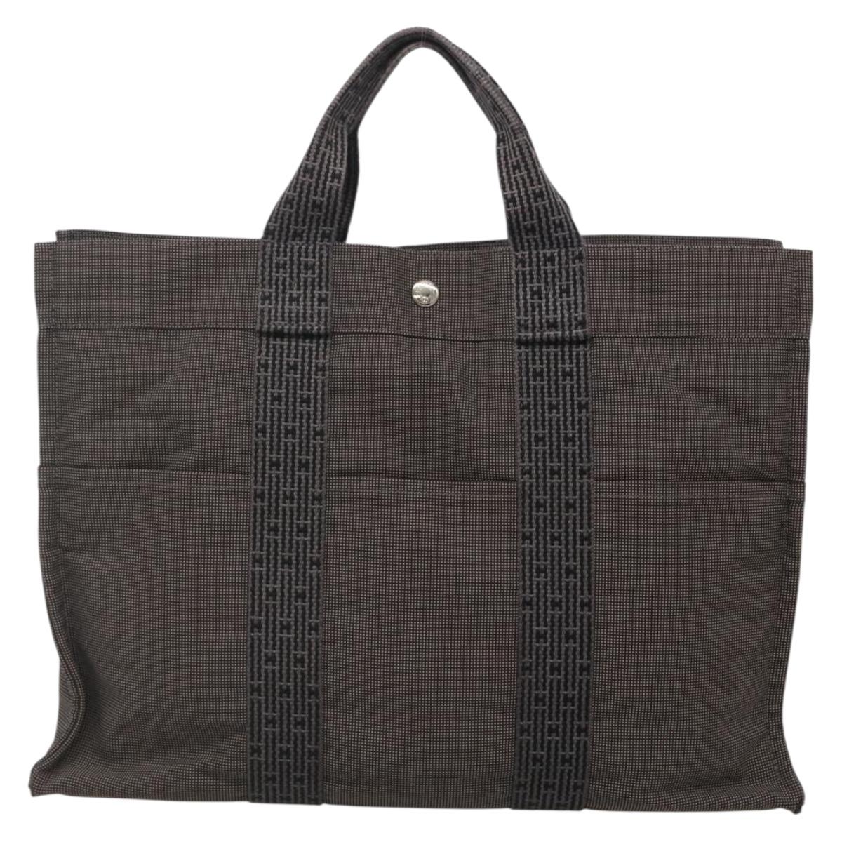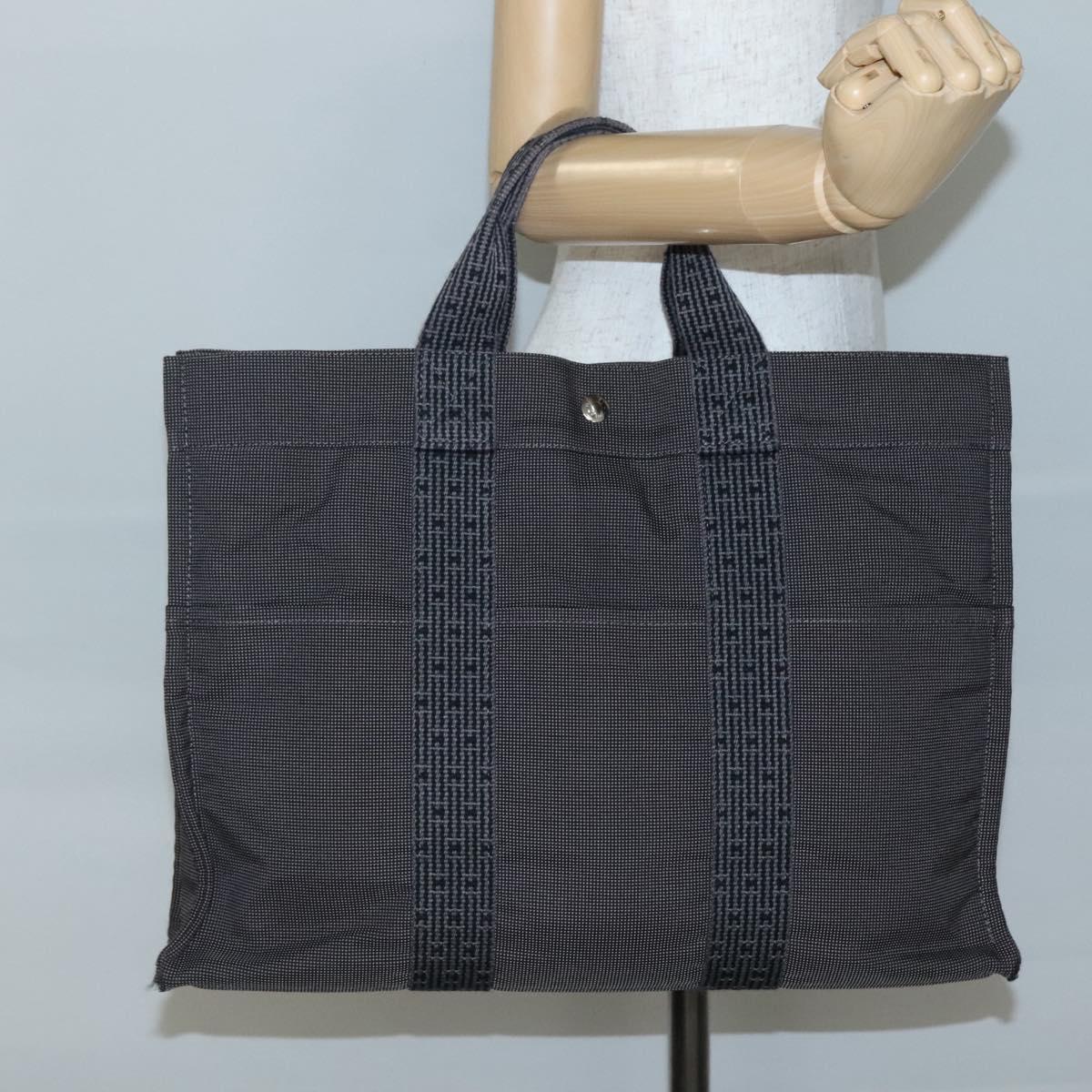 HERMES Her Line MM Hand Bag Canvas Gray Silver - 141513