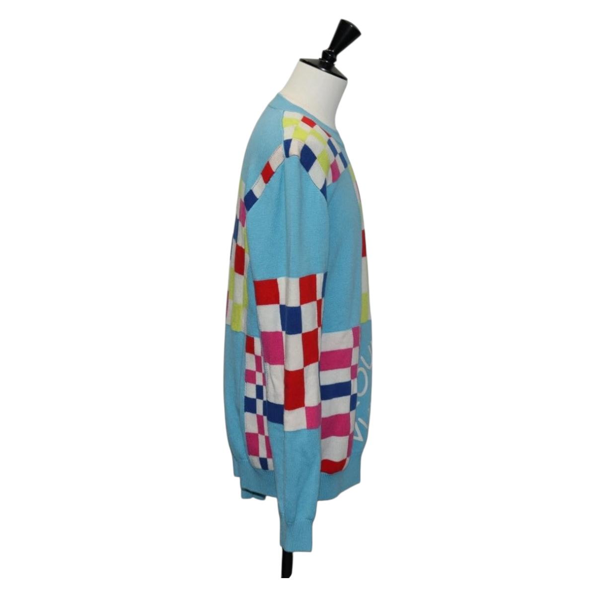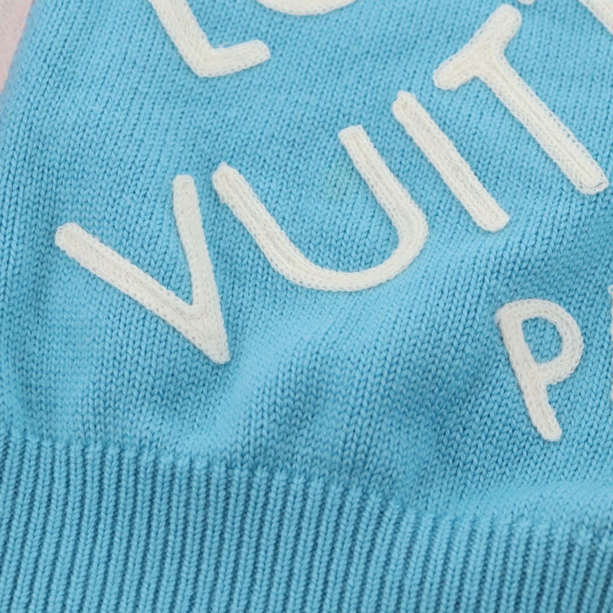 LOUIS VUITTON Damier Knit Sweater Jacket Wool Light Blue LV - 136318M