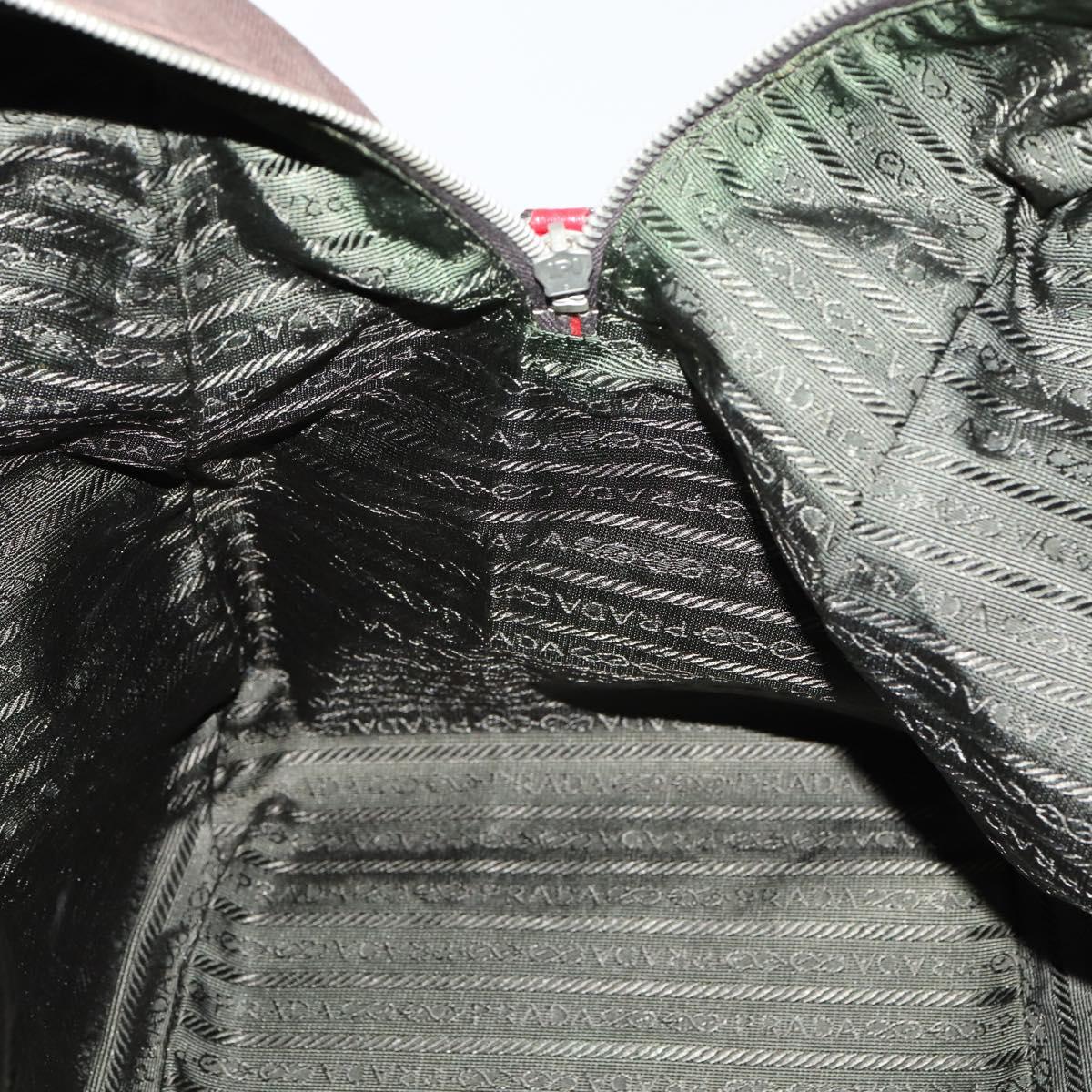 PRADA Boston Bag Canvas Leather Brown Red Silver - bs29804