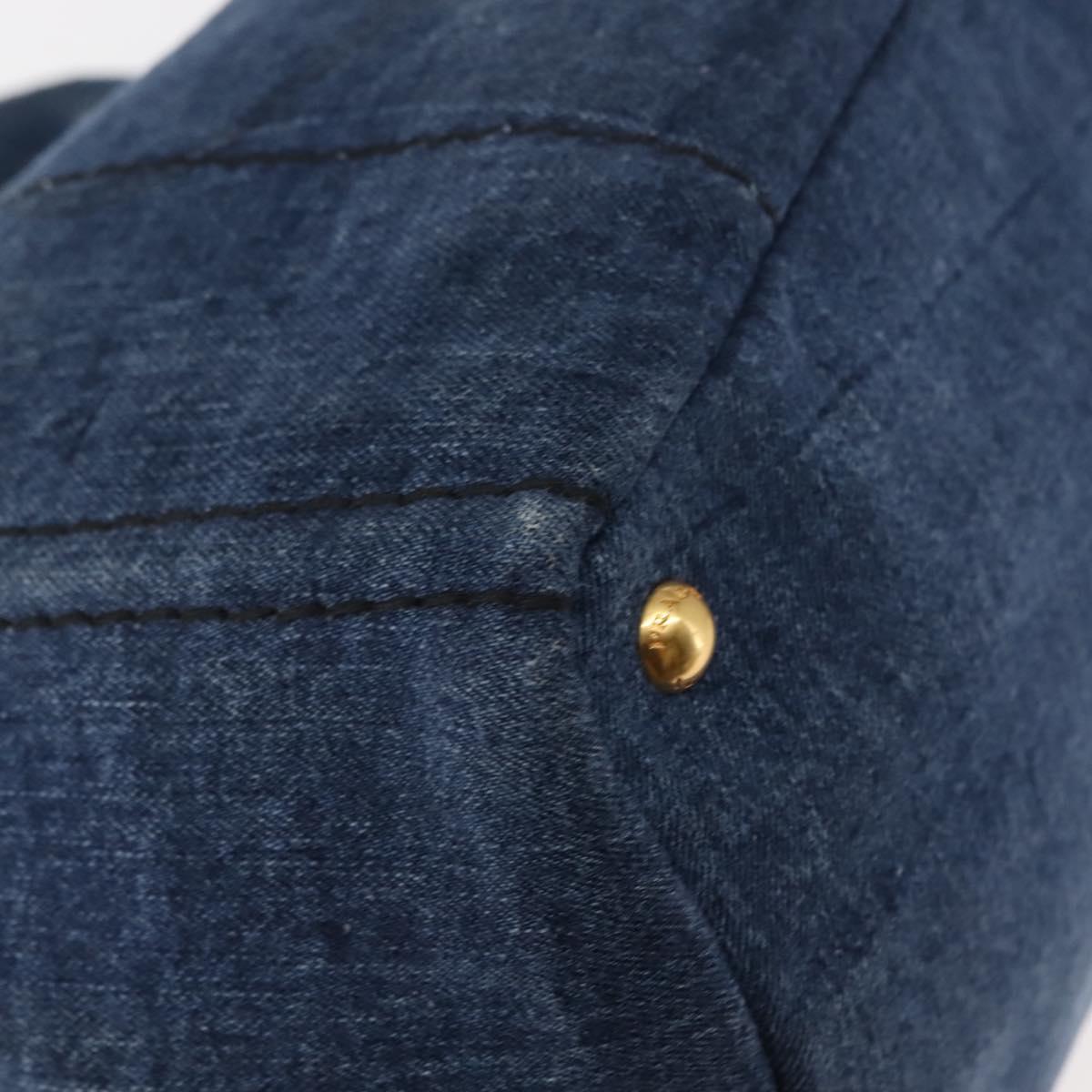 PRADA Canapa MM Hand Bag Denim Blue Gold - am9345
