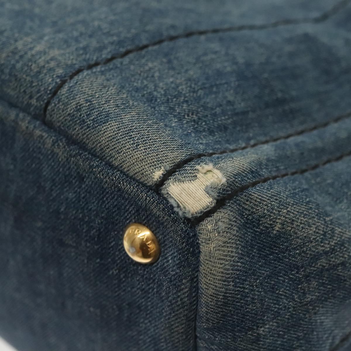 PRADA Canapa PM Hand Bag Denim 2way Blue Gold - 141917